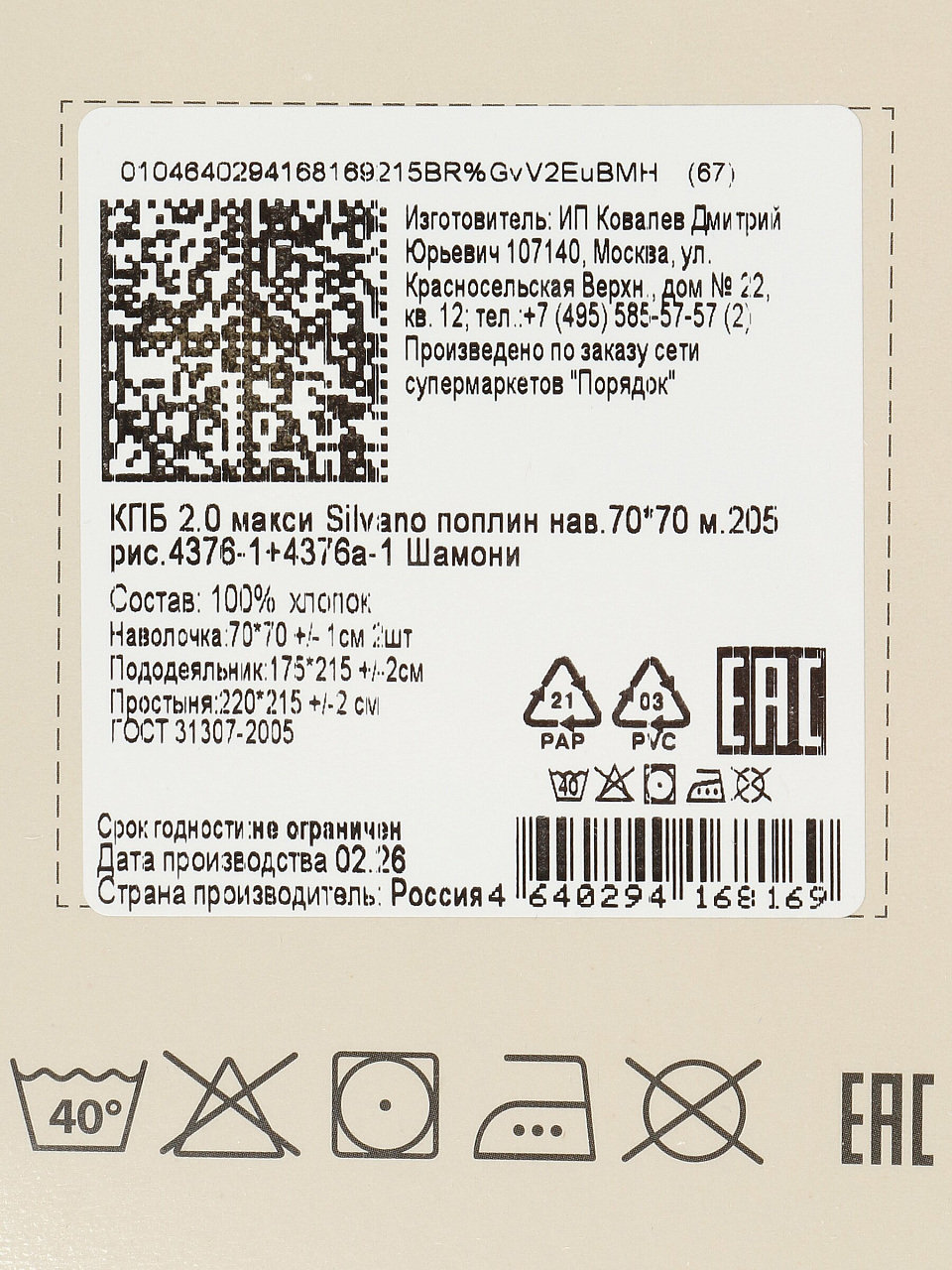 Вы можете приобрести «Постельное белье 2-спальное, простыня 215х220 см, 2 наволочки 70х70 см, пододеяльник 175х215 см, Silvano, поплин, Шамони» и другие товары в нашем интернет-магазине в Серпухове по низким ценам и с бесплатным самовывозом.