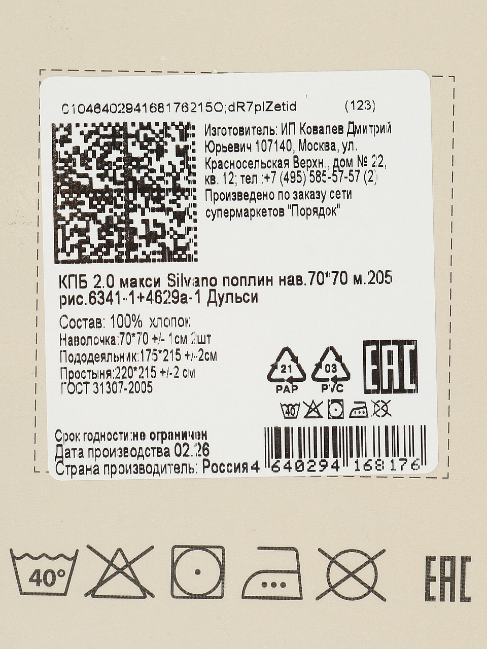 Вы можете приобрести «Постельное белье 2-спальное, простыня 215х220 см, 2 наволочки 70х70 см, пододеяльник 175х215 см, Silvano, поплин, Дульси» и другие товары в нашем интернет-магазине в Серпухове по низким ценам и с бесплатным самовывозом.
