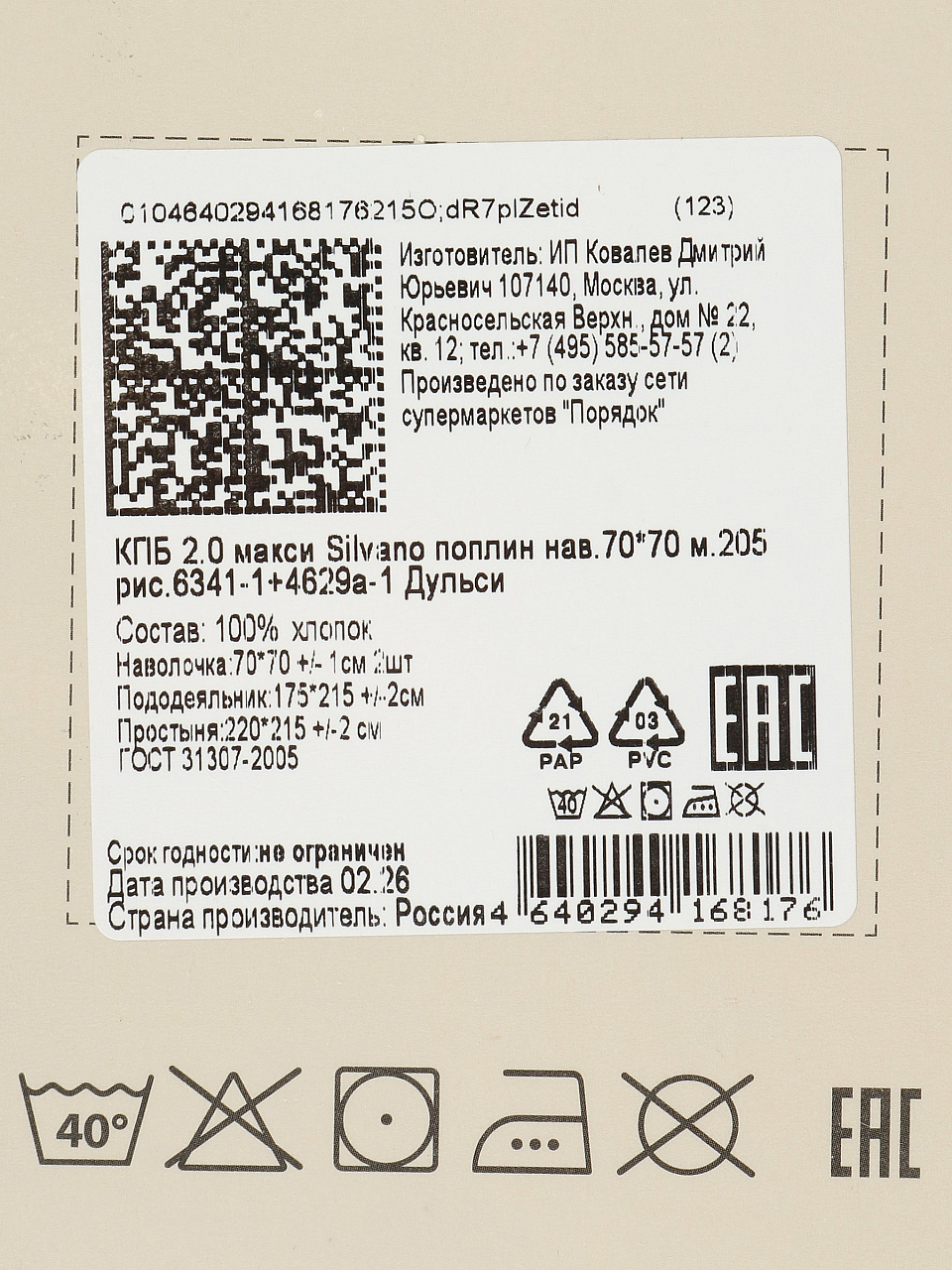 Постельное белье 2-спальное, простыня 215х220 см, 2 наволочки 70х70 см, пододеяльник 175х215 см, Silvano, поплин, Дульси - фото 1 от пользователя