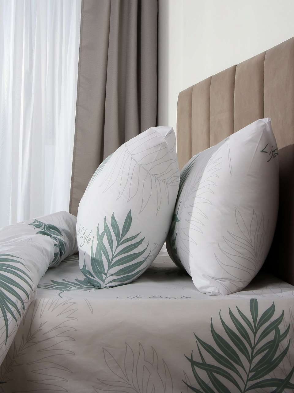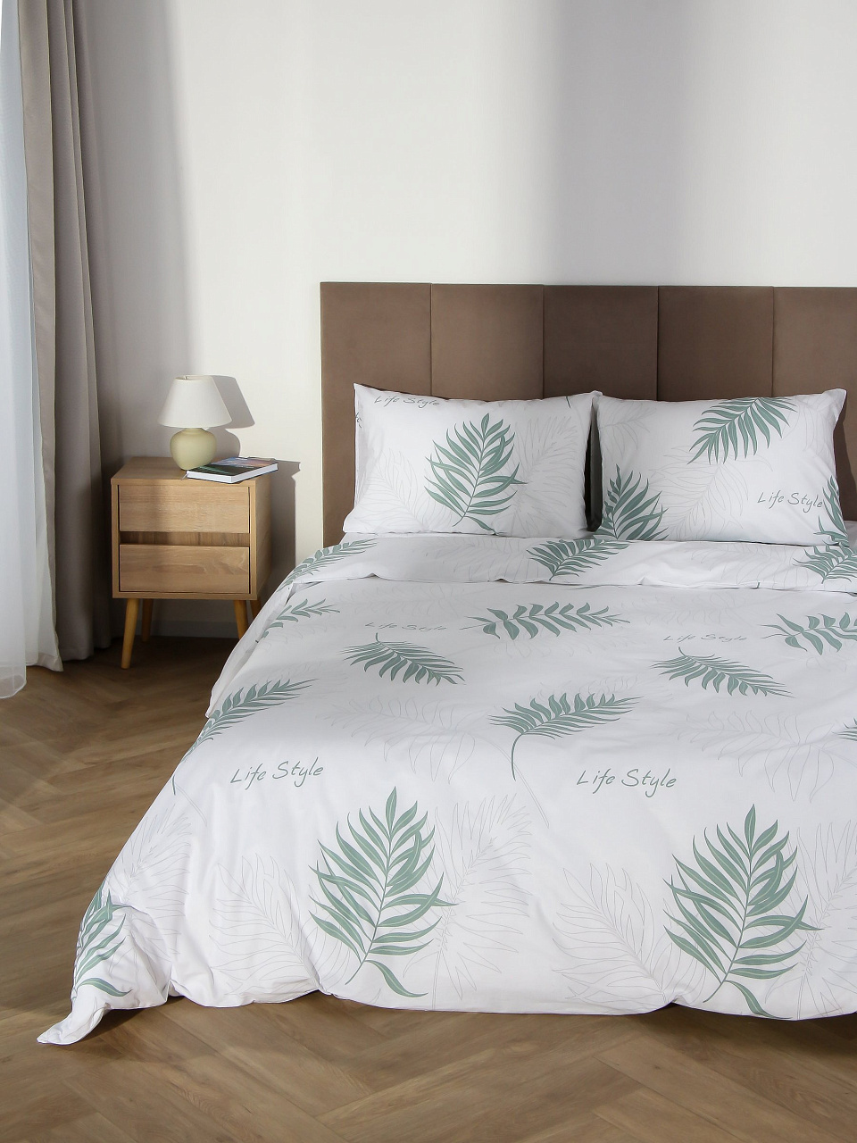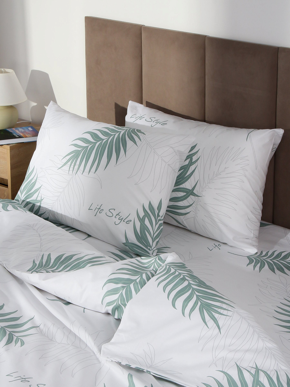 - Комплект 2-спальный: пододеяльник 215х220, простыня 175х215, две наволочки 50х70 — подходит для стандартных и евро-кроватей.
