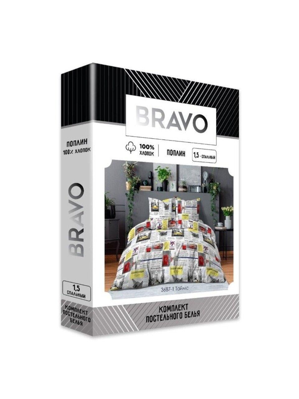 Постельное белье 1.5-спальное Bravo Таймс 3687-1: поплин, хлопок, 4 предмета, подарочная упаковка — комфорт и стиль для вашего сна по выгодной цене.