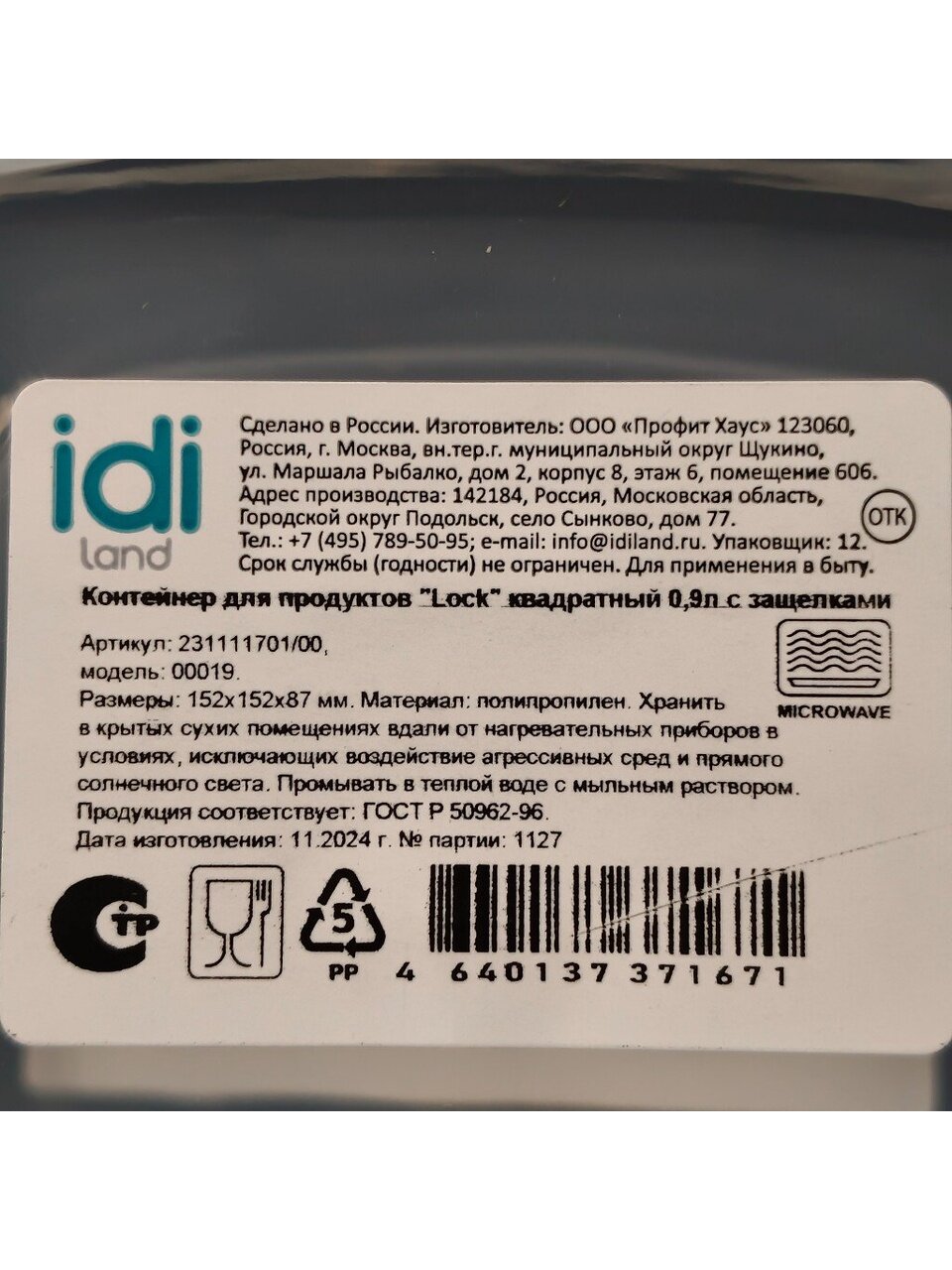 Оформите заказ на контейнер для продуктов IDIland Lock 0.9 л — получите быструю доставку, гарантию производителя и уверенность в безопасности хранения еды. Отличное решение для тех, кто ценит порядок и свежесть продуктов!