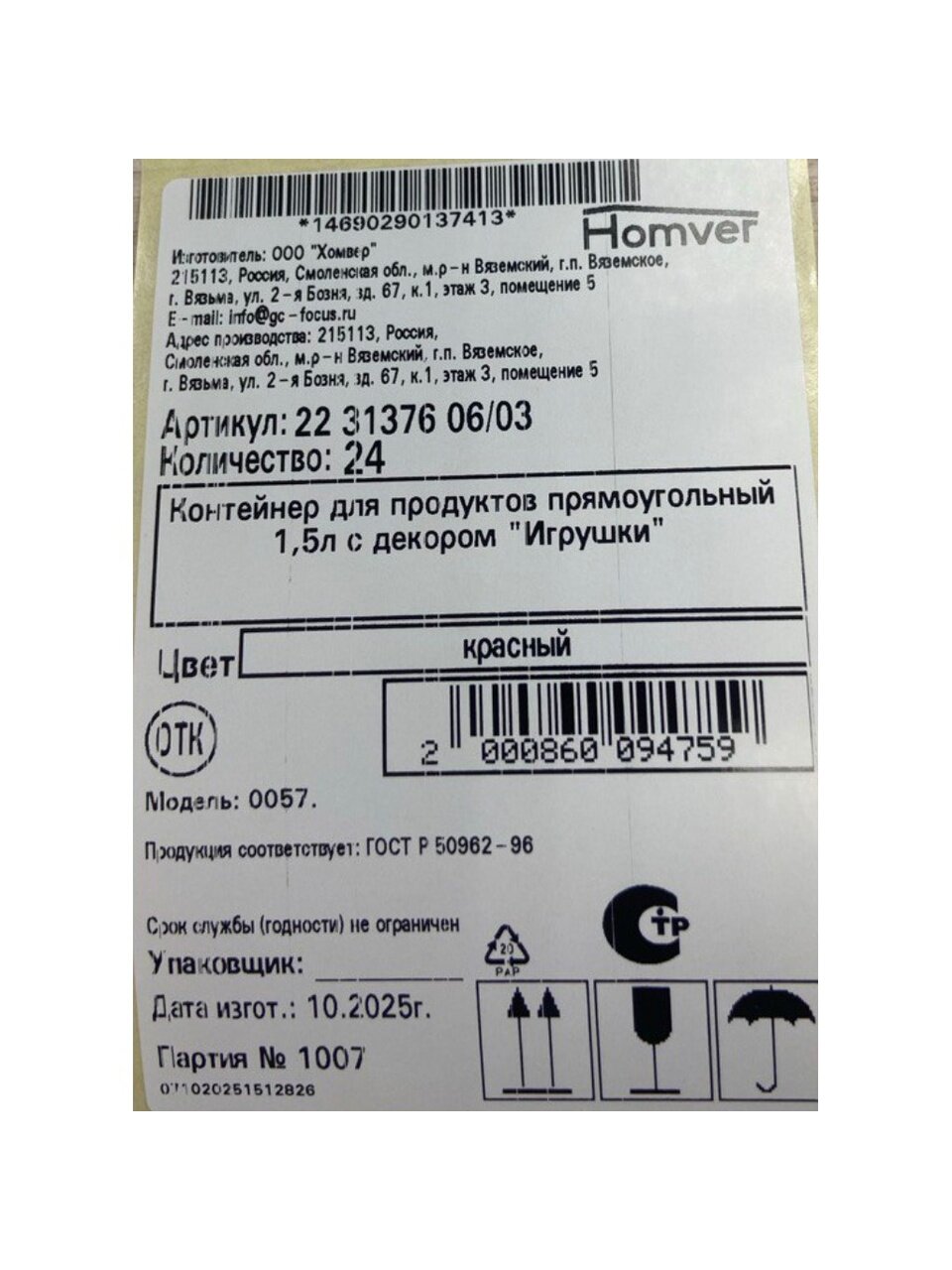 Выбирайте контейнер Homver 1.5 л, чтобы хранить продукты удобно и безопасно. Закажите сейчас — получите надёжную упаковку, быструю доставку и гарантию качества от проверенного бренда.