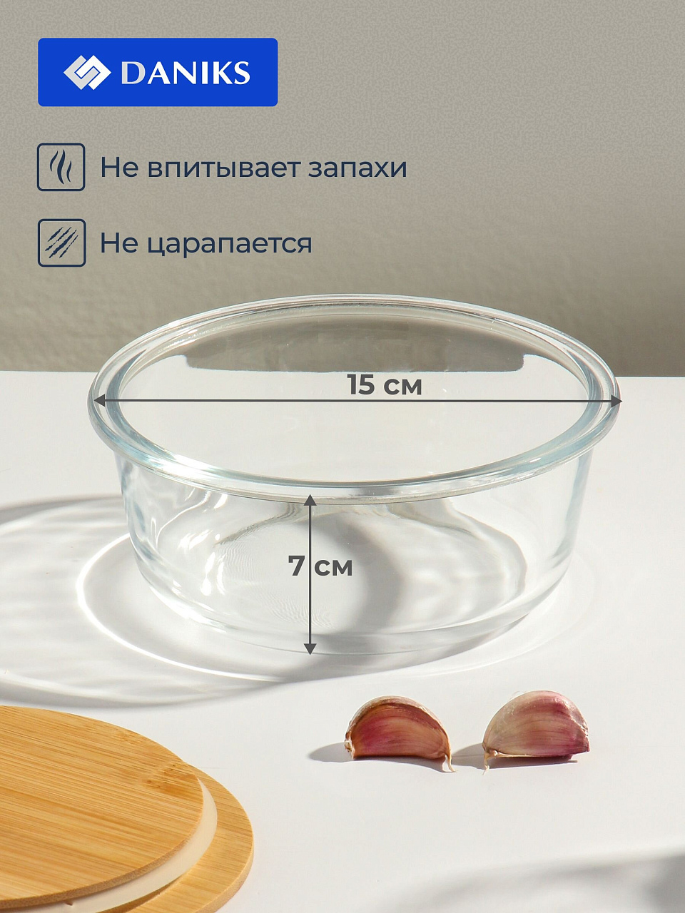 - Компактный размер 15×15×7 см и прочное жаропрочное стекло — подходит для СВЧ и хранения