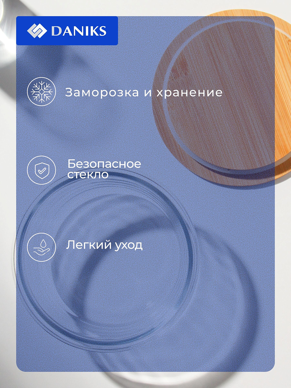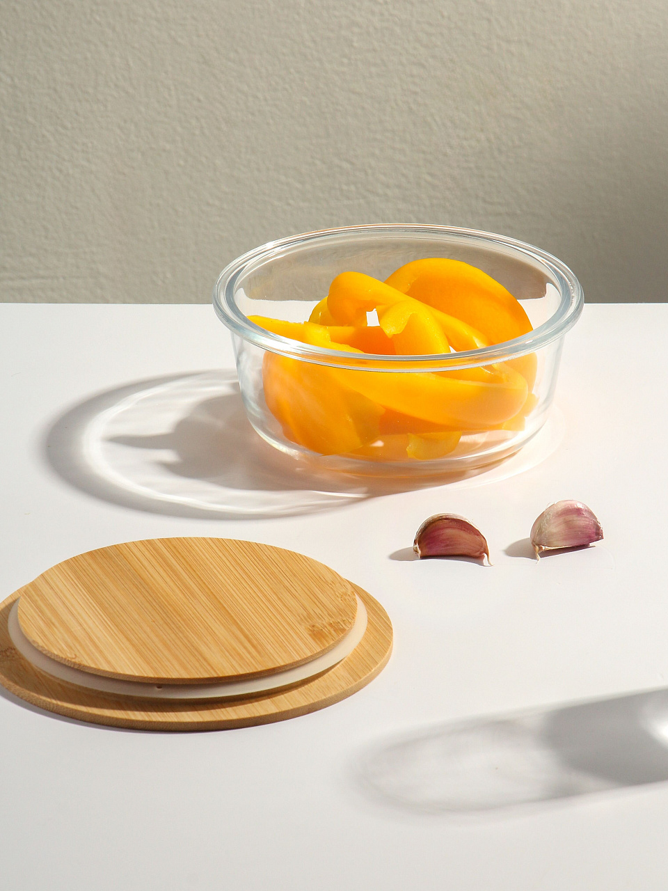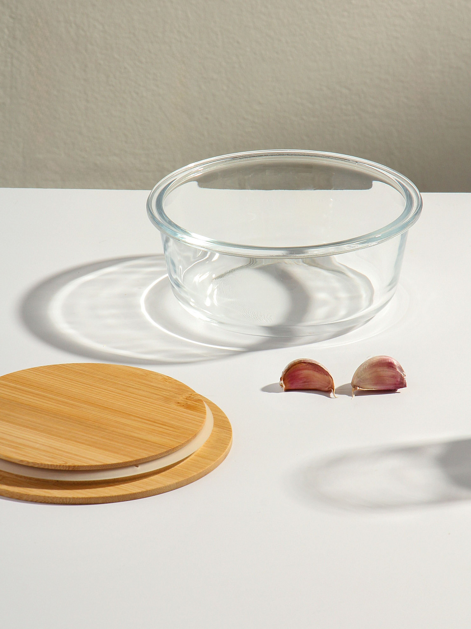 Жаропрочное стекло не впитывает запахи, не окрашивается и не выделяет вредных веществ при нагреве. Бамбуковая крышка экологична и предотвращает появление конденсата.