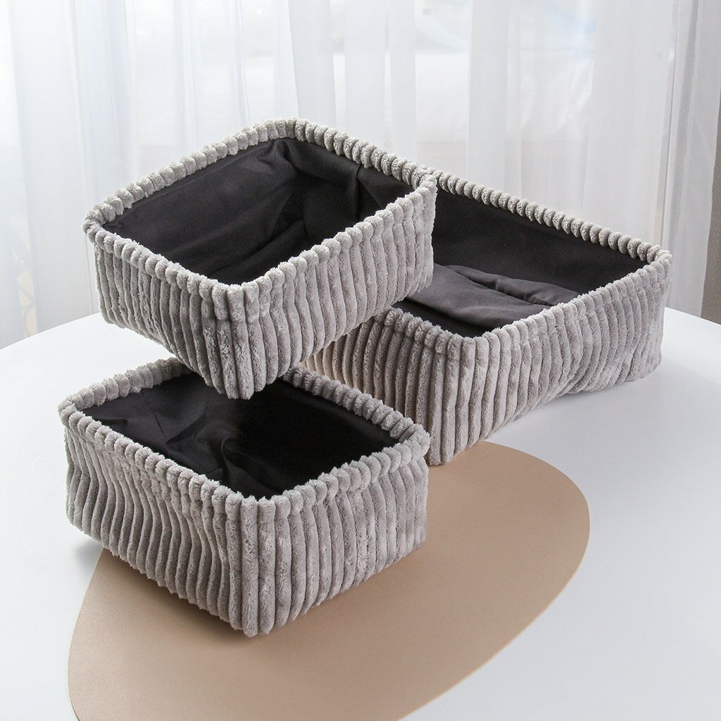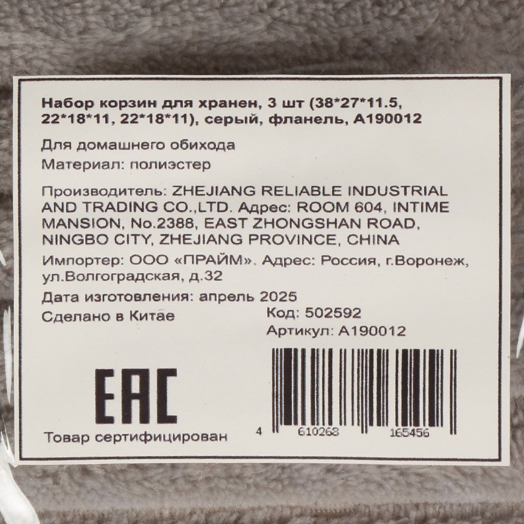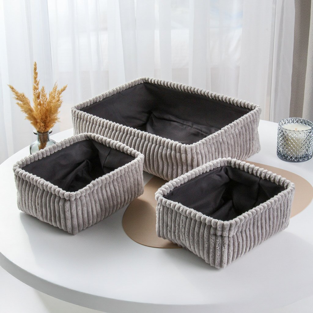Набор корзин для хранения 3 шт: компактное и стильное решение для организации пространства дома или дачи. Серый фланель, складная конструкция, три размера — порядок без лишних затрат.