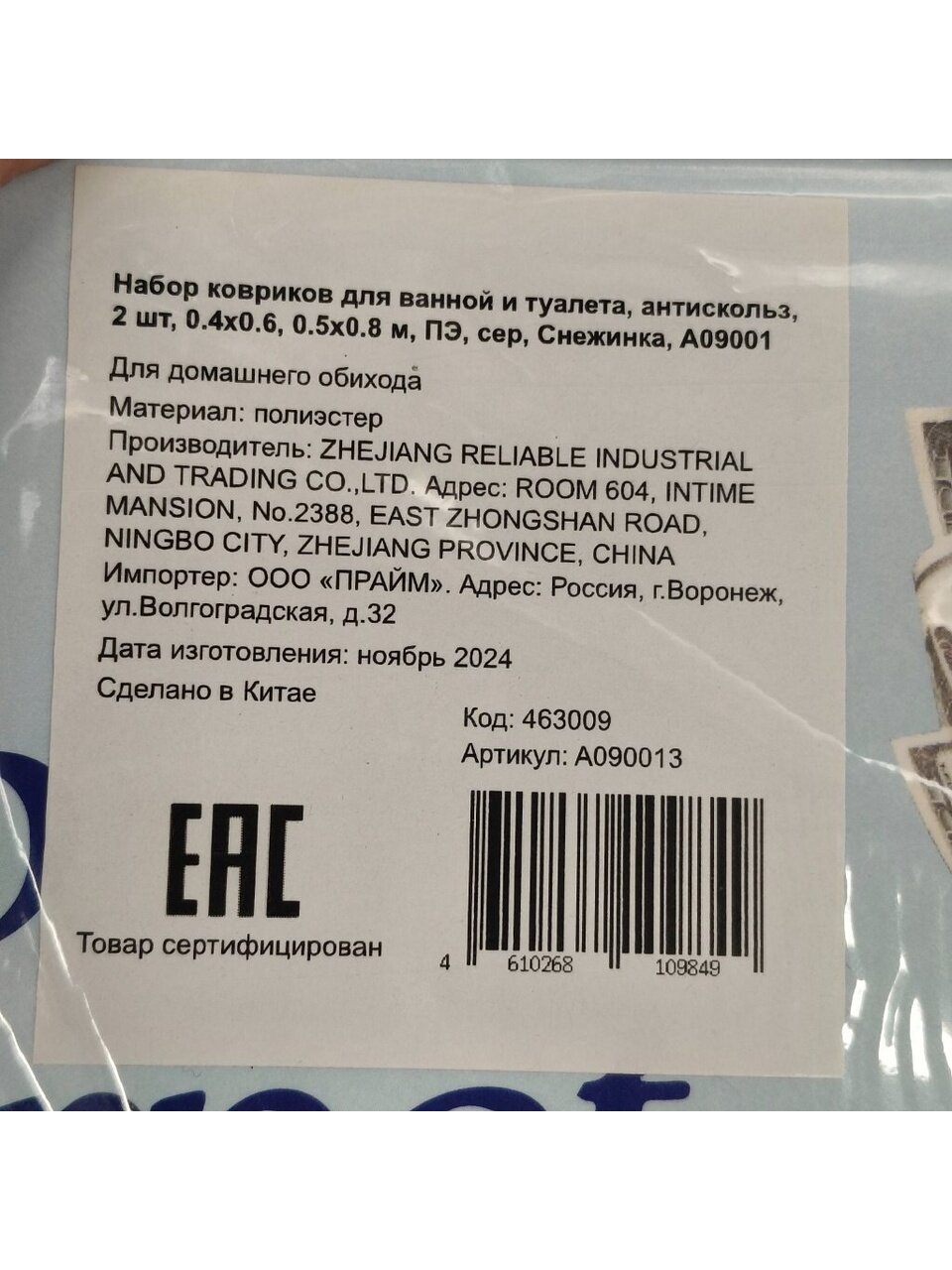 Вы можете приобрести «Набор ковриков для ванной и туалета, антискользящий, 2 шт, 0.4х0.6, 0.5х0.8 м, полиэстер, серый, Снежинка, A090013» и другие товары в нашем интернет-магазине в Курске по низким ценам и с бесплатным самовывозом.