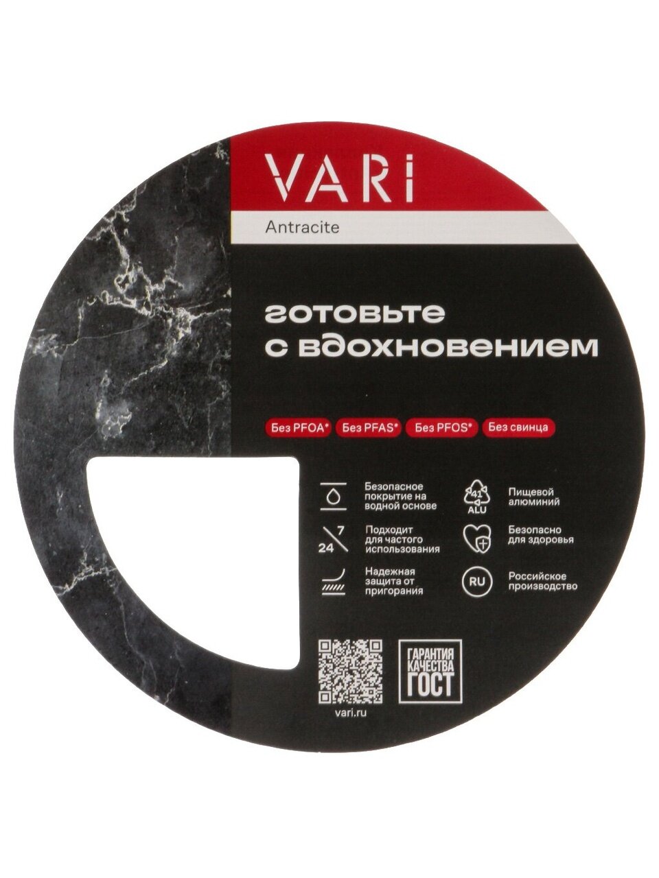 Ковш Vari Антрацит 1 л с антипригарным покрытием и стеклянной крышкой — идеальный выбор для быстрой готовки дома и на даче без лишних хлопот.