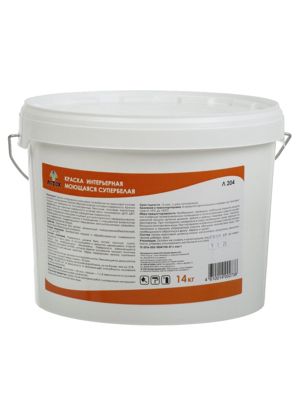 Вы можете приобрести «Краска водно-дисперсионная, Оптимист, Латек Л204, акриловая, интерьерная, моющаяся, супербелая, 14 кг» и другие товары в нашем интернет-магазине в Борисоглебске по низким ценам и с бесплатным самовывозом.