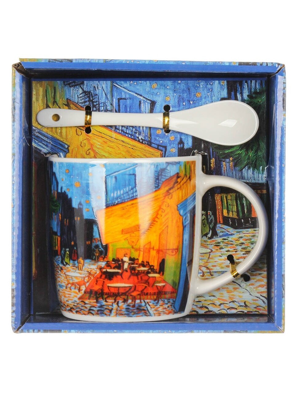 - Яркий дизайн «Ночная терраса» и ложка в комплекте — готовое решение для подарка