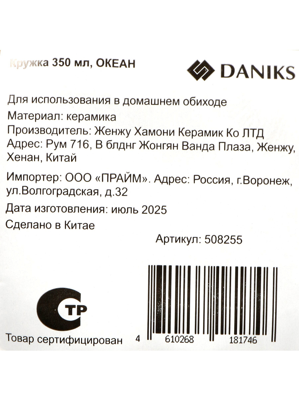 Вы можете приобрести «Кружка керамика, 350 мл, Океан, Daniks, HMN250724A4-MUG» и другие товары в нашем интернет-магазине в Краснодаре по низким ценам и с бесплатным самовывозом.
