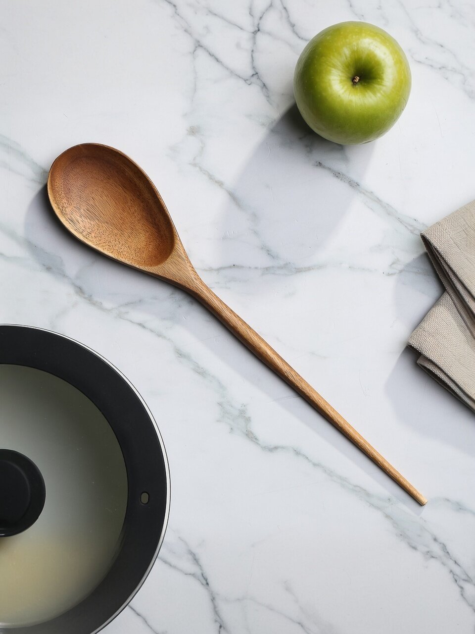 - Экологичный выбор — ложка из массива акации не впитывает запахи, подходит для любых блюд.