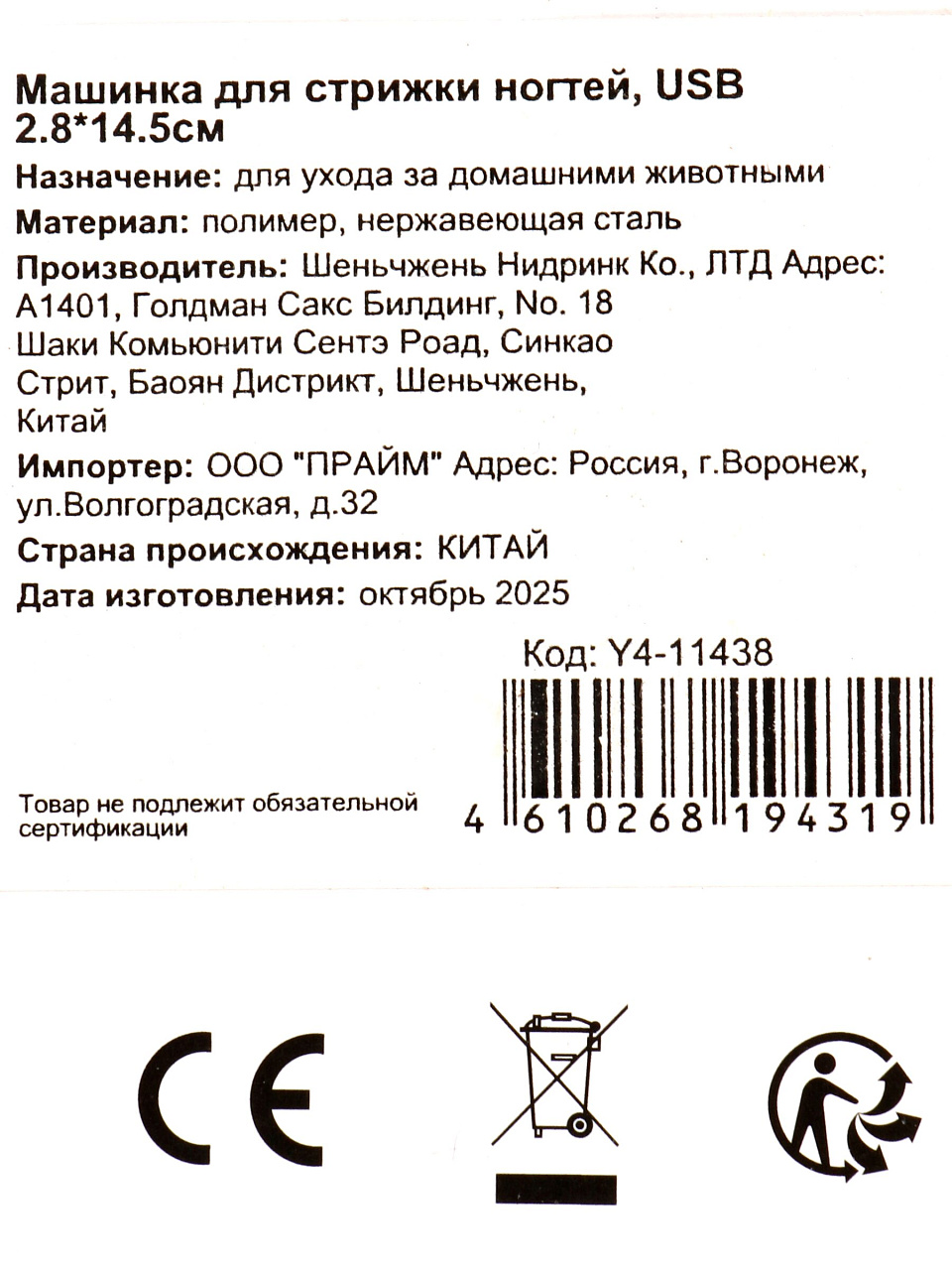 Вы можете приобрести «Машинка для стрижки ногтей 14.5Х2.8 см, USB, Y4-11438» и другие товары в нашем интернет-магазине в Краснодаре по низким ценам и с бесплатным самовывозом.