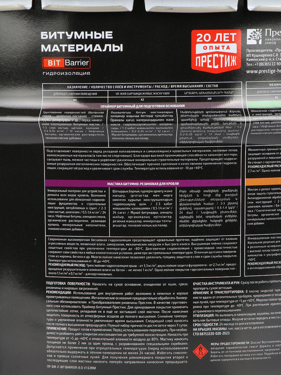 Мастика битумно-полимер Престиж 8 кг: универсальная защита для кровли и гидроизоляции, выдерживает до +110ºС, экономичный расход, надёжный результат