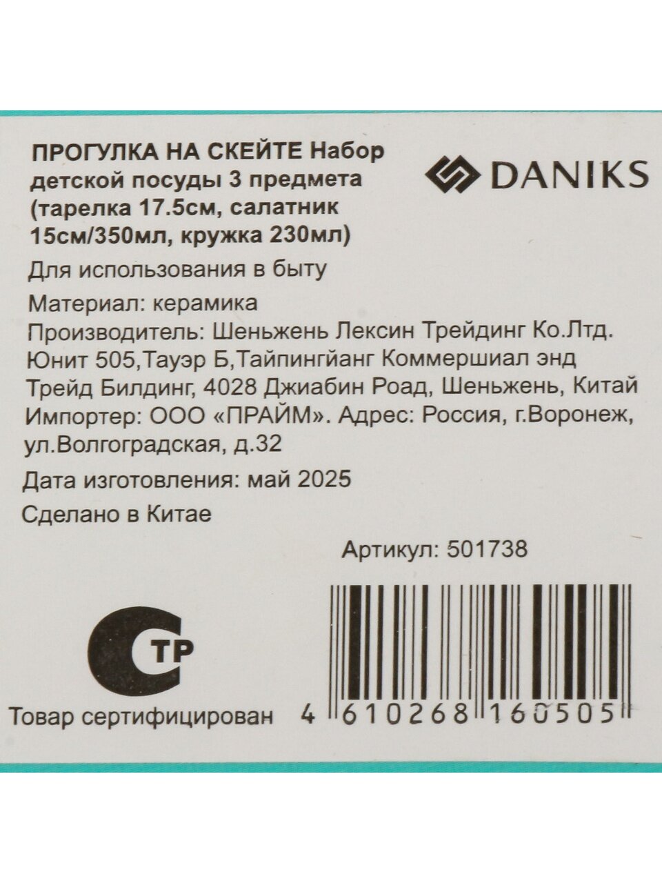 Вы можете приобрести «Набор посуды керамика, 3 шт, Прогулка на скейте, тарелка 17.5 см, салатник 15 см/350 мл, кружка 230 мл, Daniks» и другие товары в нашем интернет-магазине в Обнинске по низким ценам и с бесплатным самовывозом.