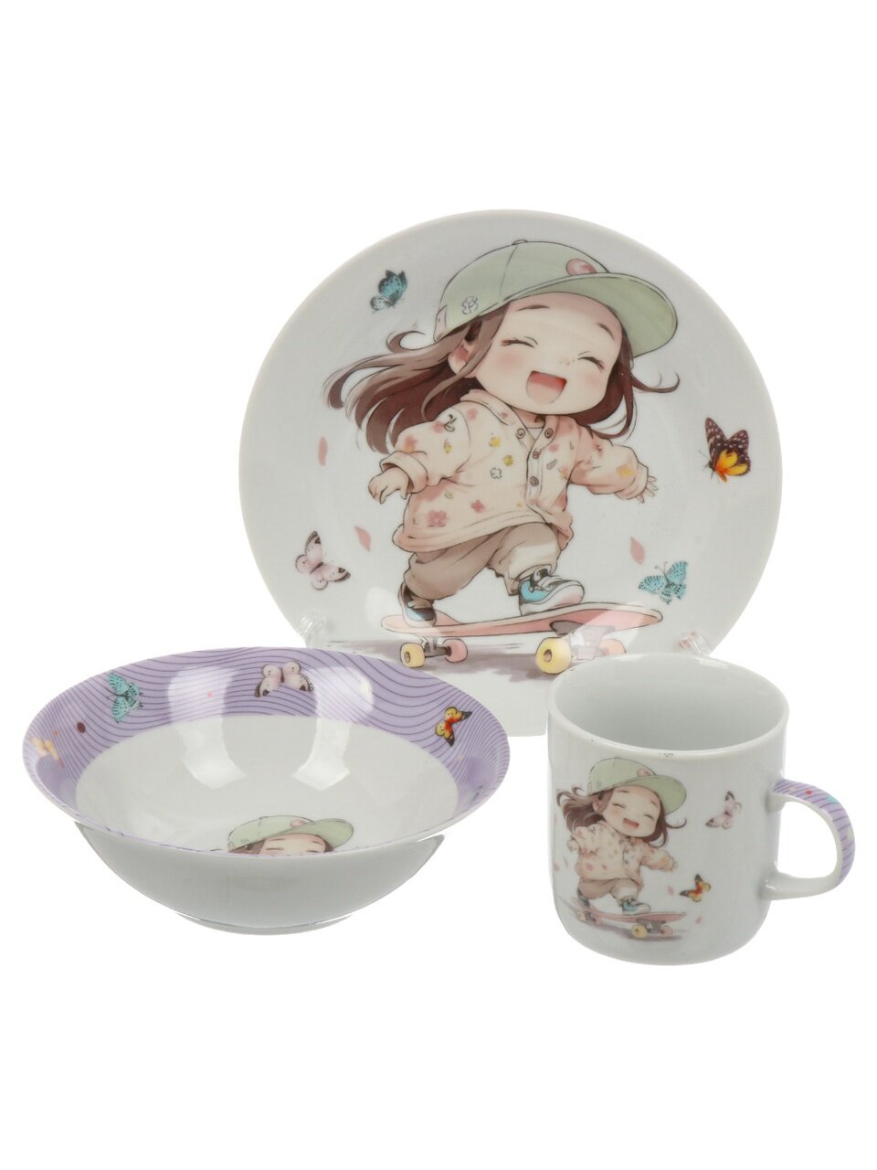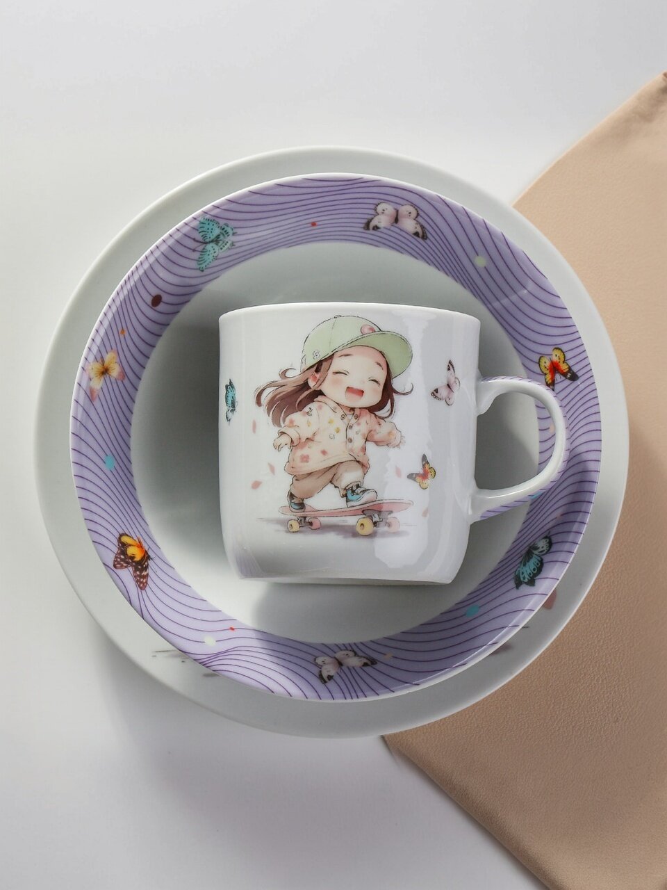 Яркий набор керамической посуды Daniks «Прогулка на скейте» для девочки: 3 предмета в подарочной упаковке — идеальный выбор для дома, дачи и подарка.