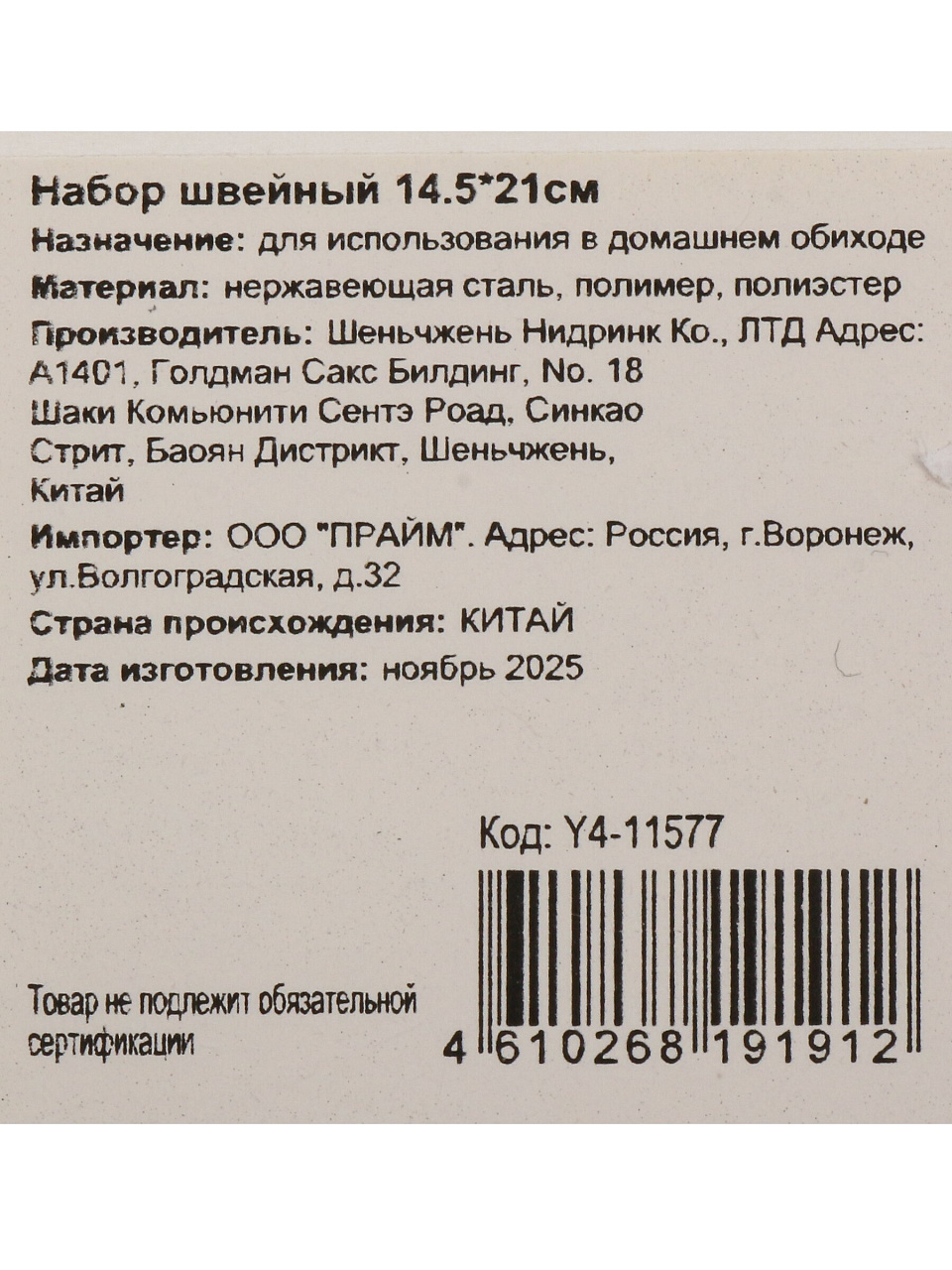 В набор входят основные инструменты и расходные материалы для шитья, детали уточняйте в описании. Бренд — другие бренды, страна продавца — Китай, артикул Y4-11577.