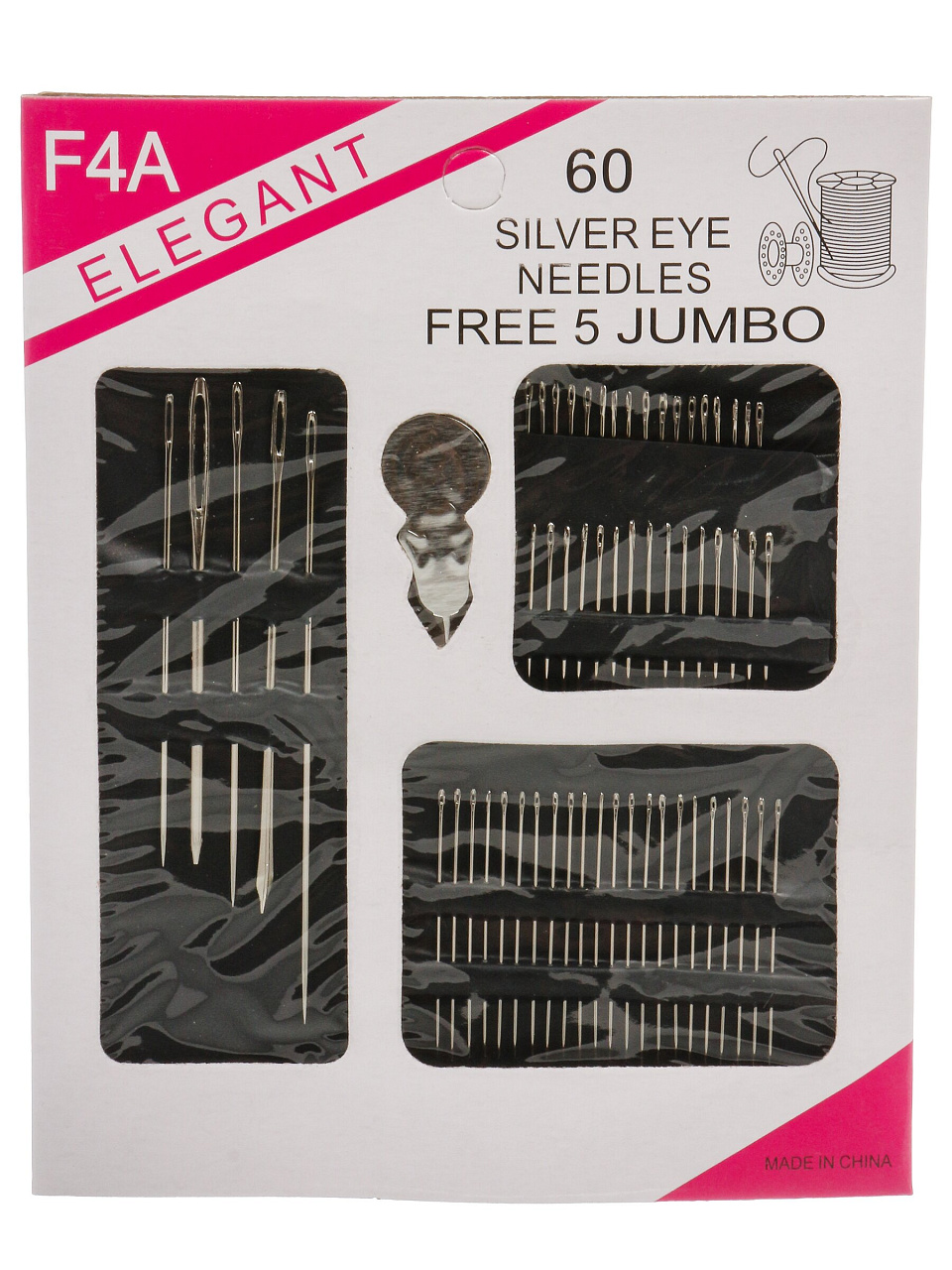 - Широкий ассортимент — 60 игл разного типа для ручного и машинного шитья, мелкого ремонта и творчества.