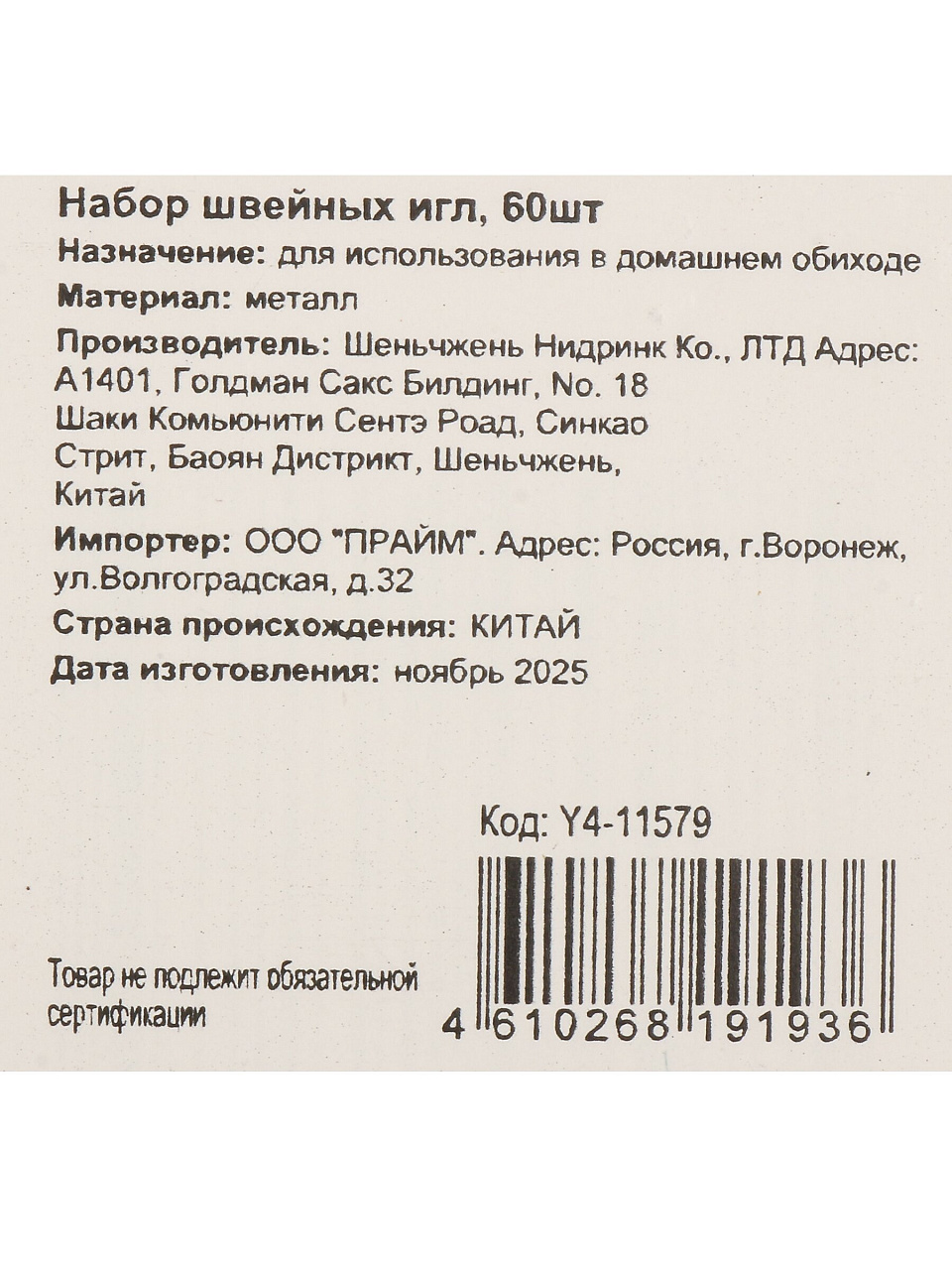 Вы можете приобрести «Набор игл 60 предметов, швейный, Y4-11579» и другие товары в нашем интернет-магазине в Таганроге по низким ценам и с бесплатным самовывозом.