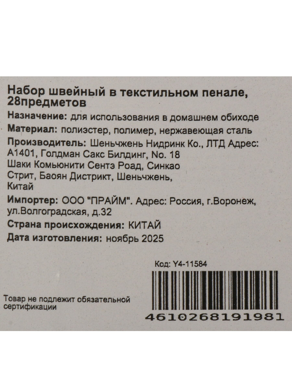 Что входит в набор швейный 28 предметов Y4-11584?