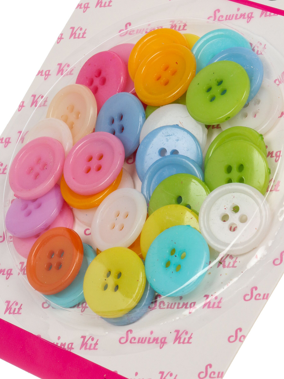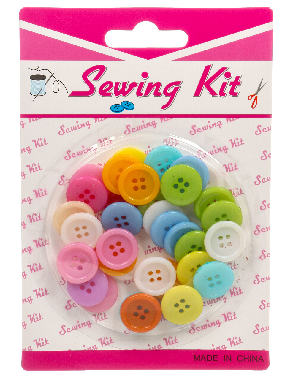 В комплекте 30 предметов: иглы, нити, булавки, напёрсток, ножницы, пуговицы и др. Подходит для домашнего ремонта, творчества, путешествий.