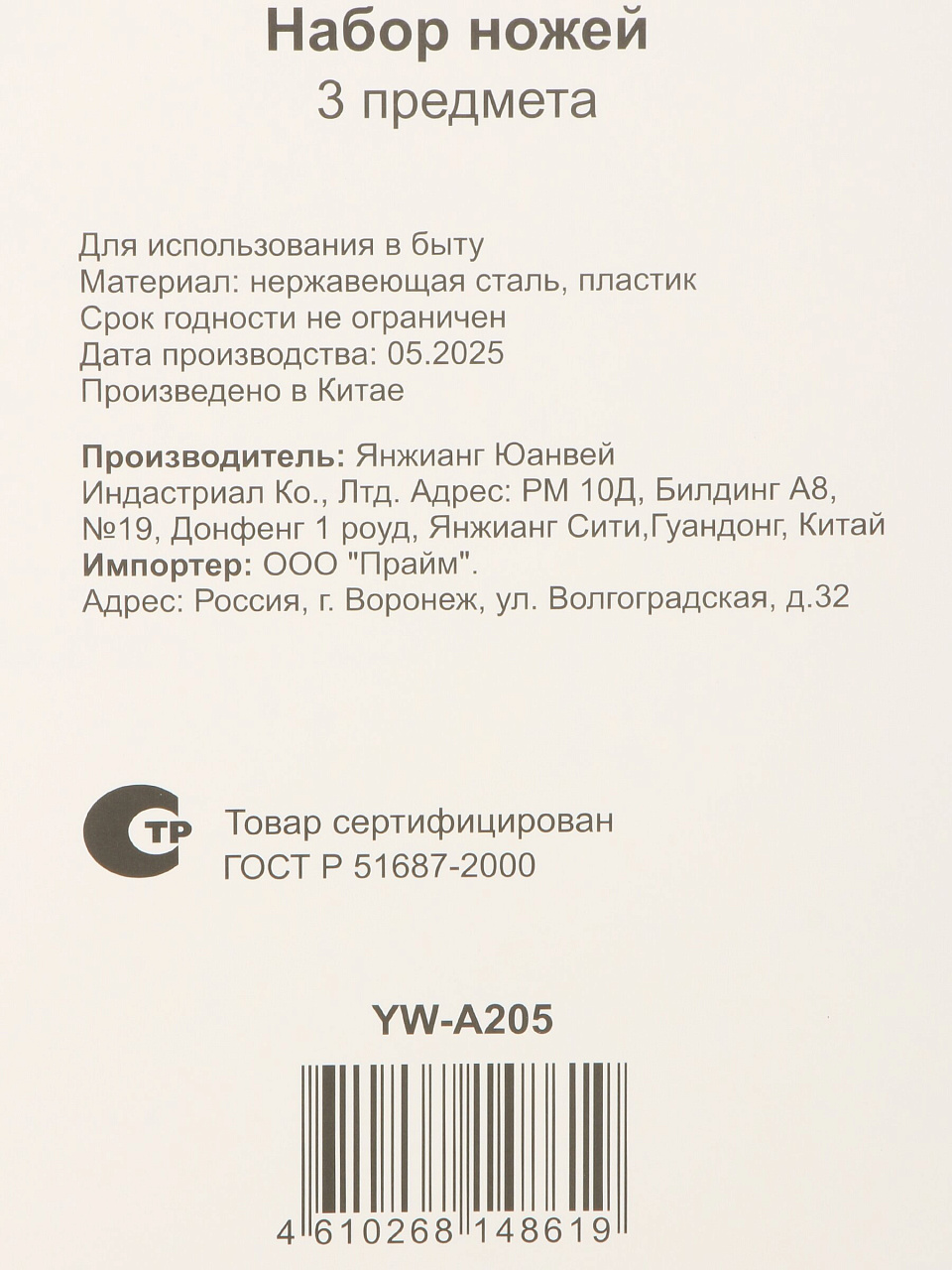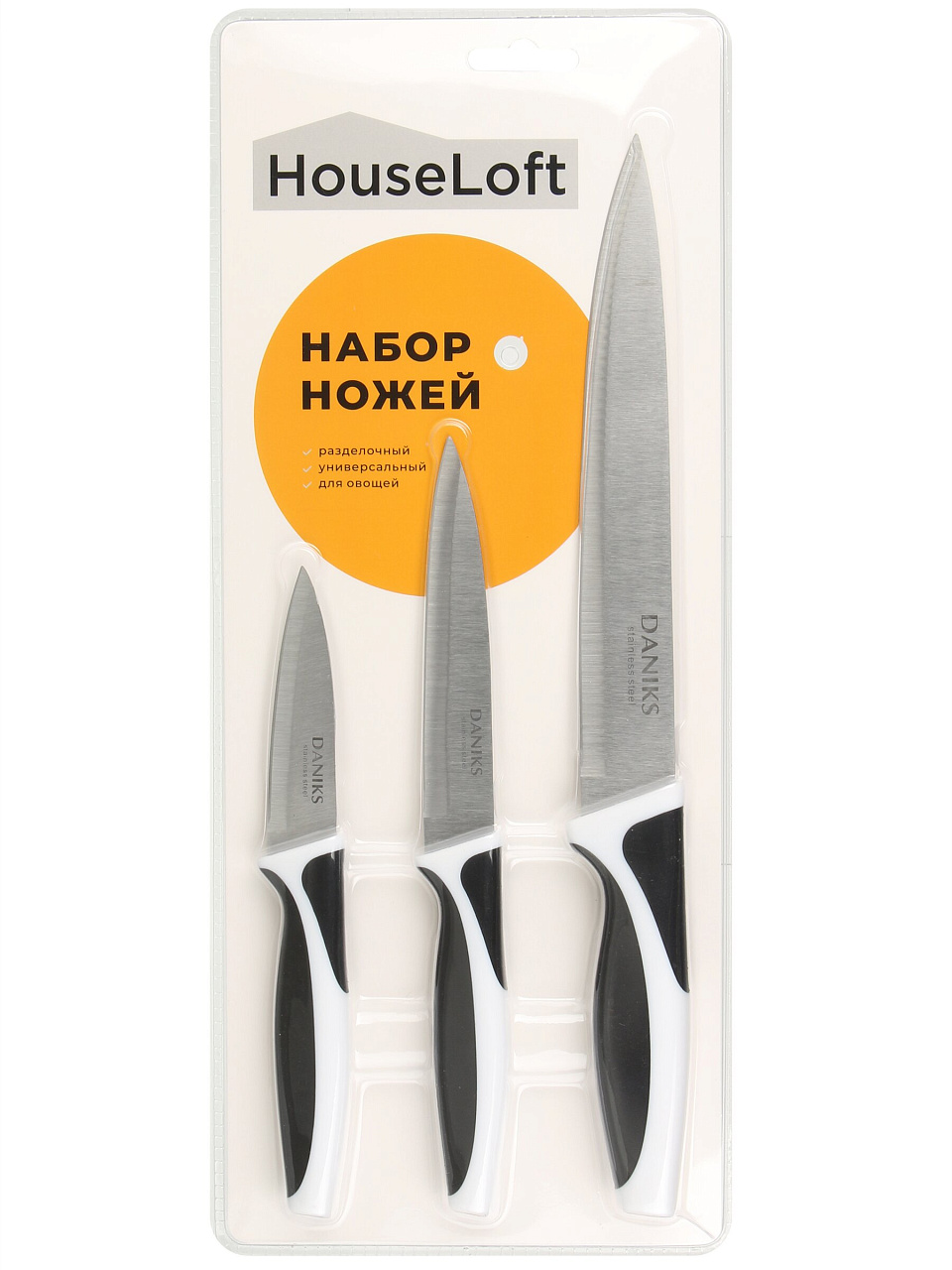 Набор ножей 3 пр, нерж сталь, рук пласт, блистер, HouseLoft, YW-A205