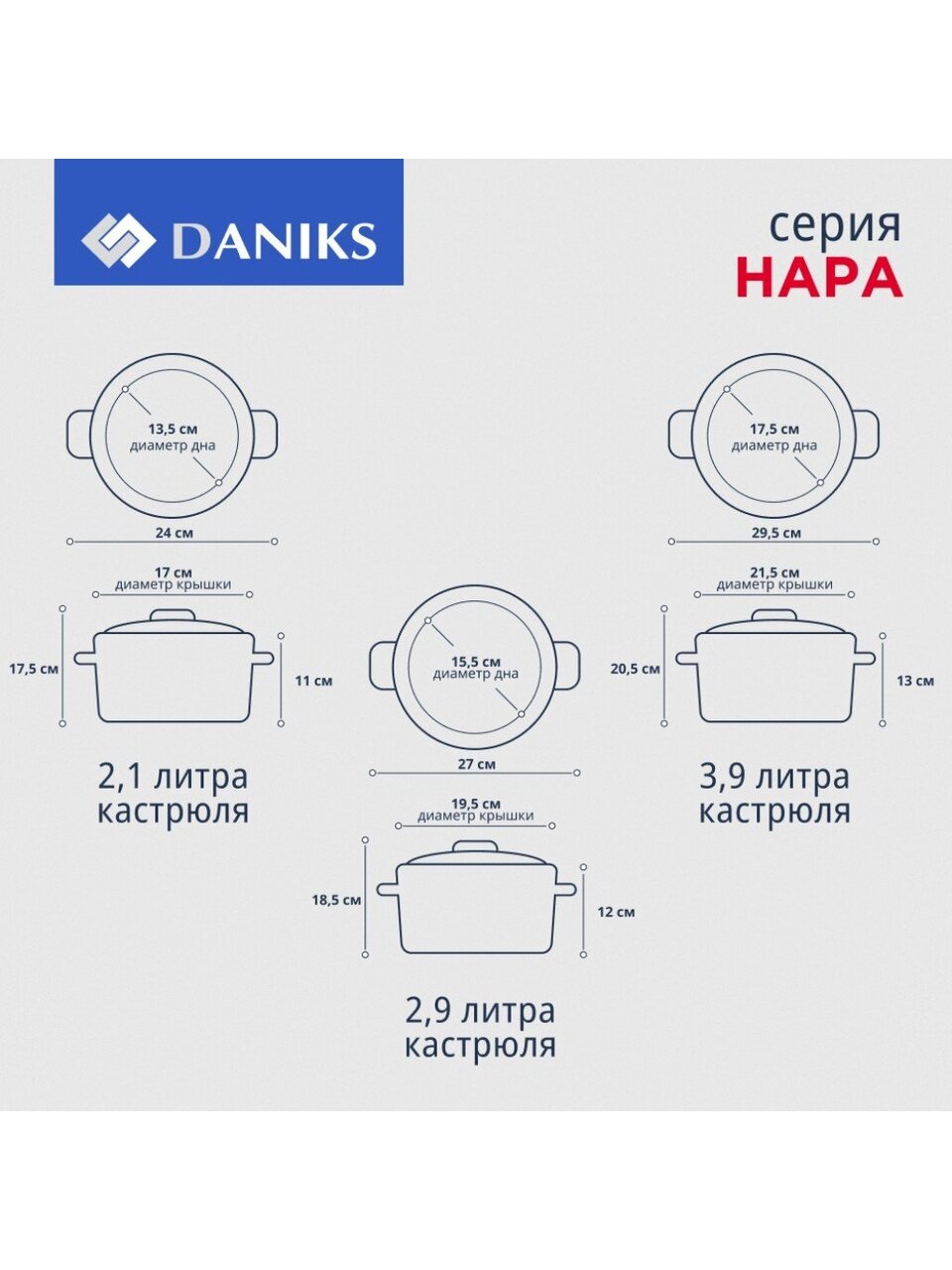 Выбирайте набор кастрюль Daniks Нара — надежное решение для кухни, где ценят качество, комфорт и современные стандарты безопасности. Закажите сейчас с выгодными условиями доставки и получите универсальную посуду для любых задач!
