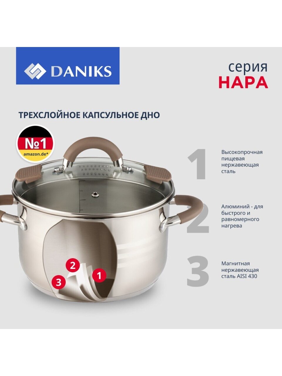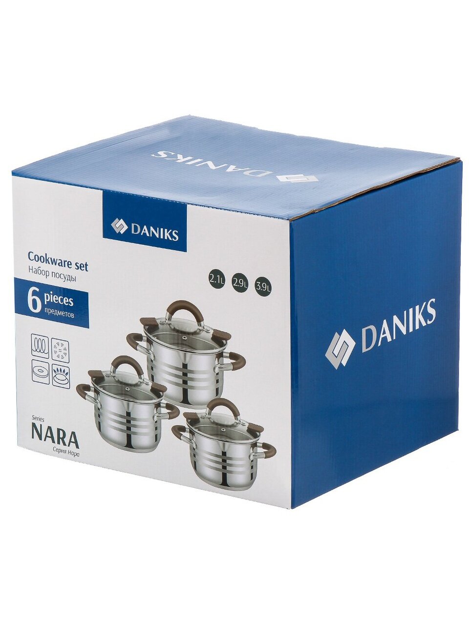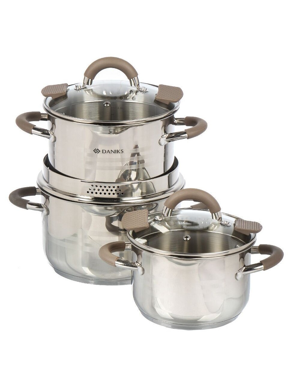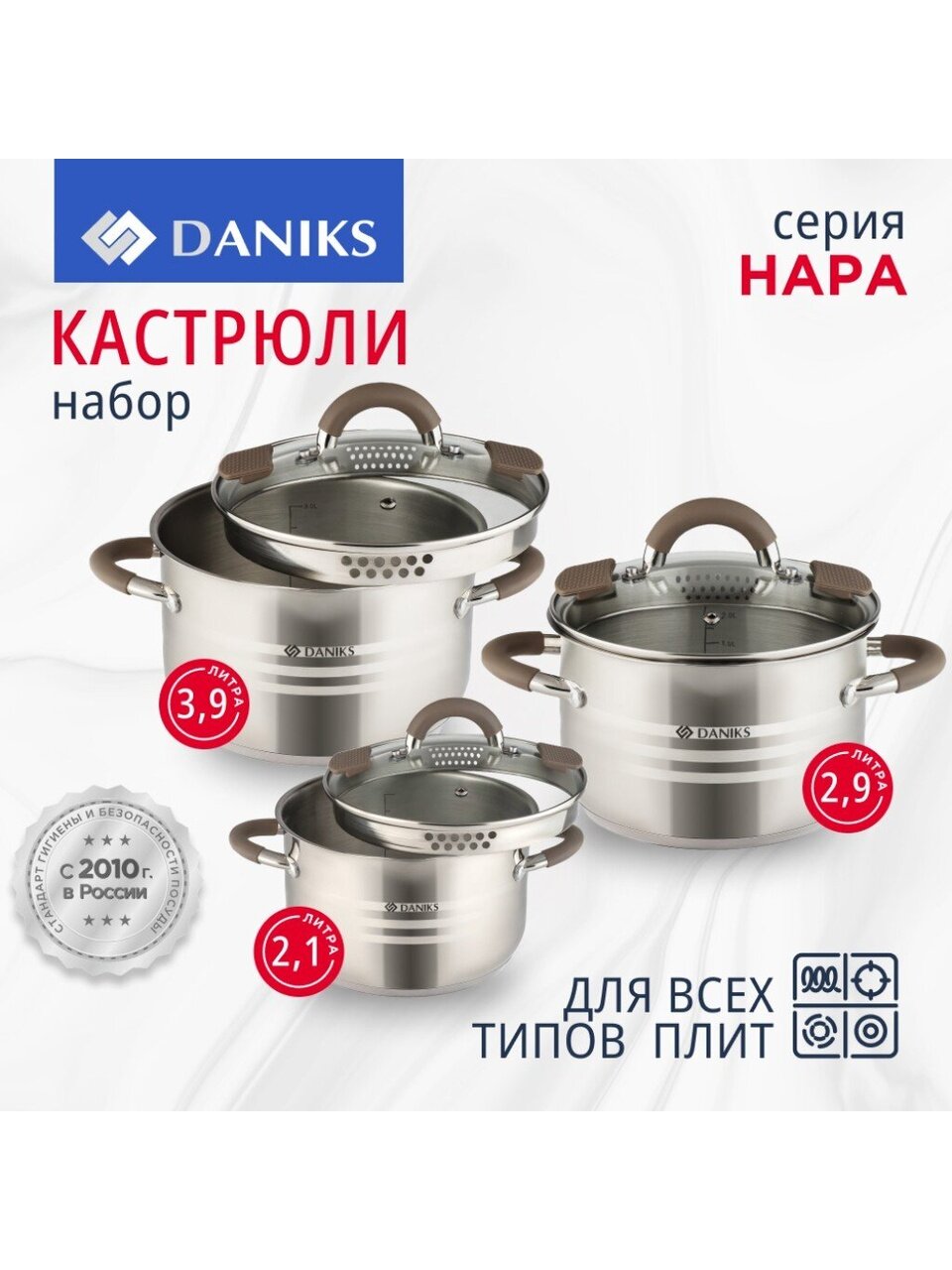 Набор кастрюль Daniks Нара 6 предметов: оптимальный выбор из нержавеющей стали для индукции, дома и дачи — долговечность и стиль по доступной цене