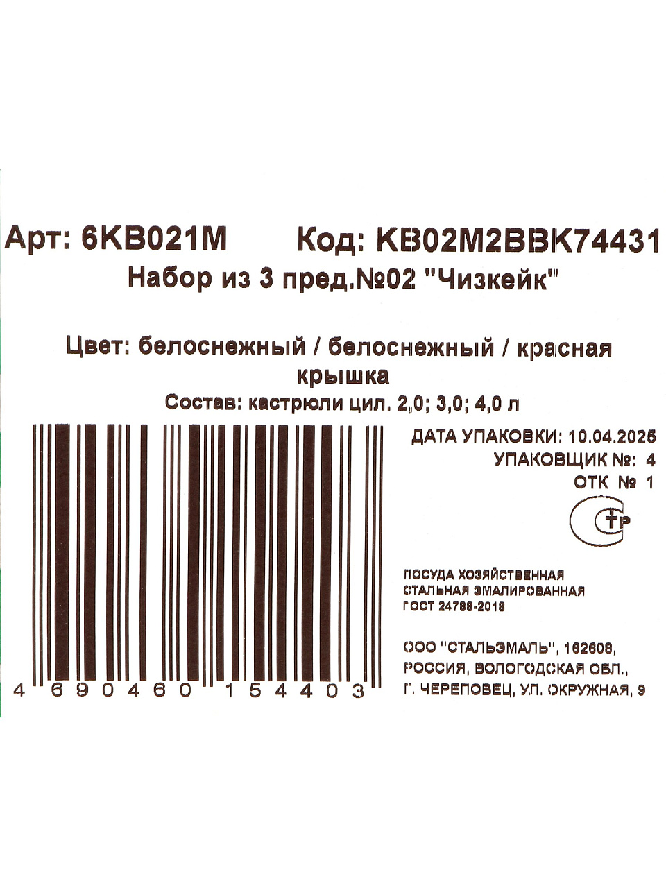 Вы можете приобрести «Набор посуды эмалированная сталь, 3 предмета, кастрюли 2, 3, 4 л, индукция, СтальЭмаль, Чизкейк, 6KB021M» и другие товары в нашем интернет-магазине в Борисоглебске по низким ценам и с бесплатным самовывозом.