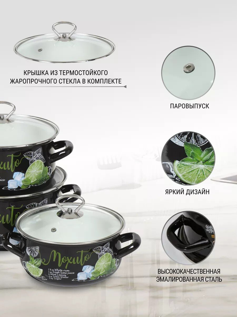 Выбирайте оригинальный набор кастрюль Мохито-1 Экстра Стиль — выгодное предложение для тех, кто ценит надёжность и современный стиль. Оформите заказ прямо сейчас и получите качественную посуду с доставкой по России.