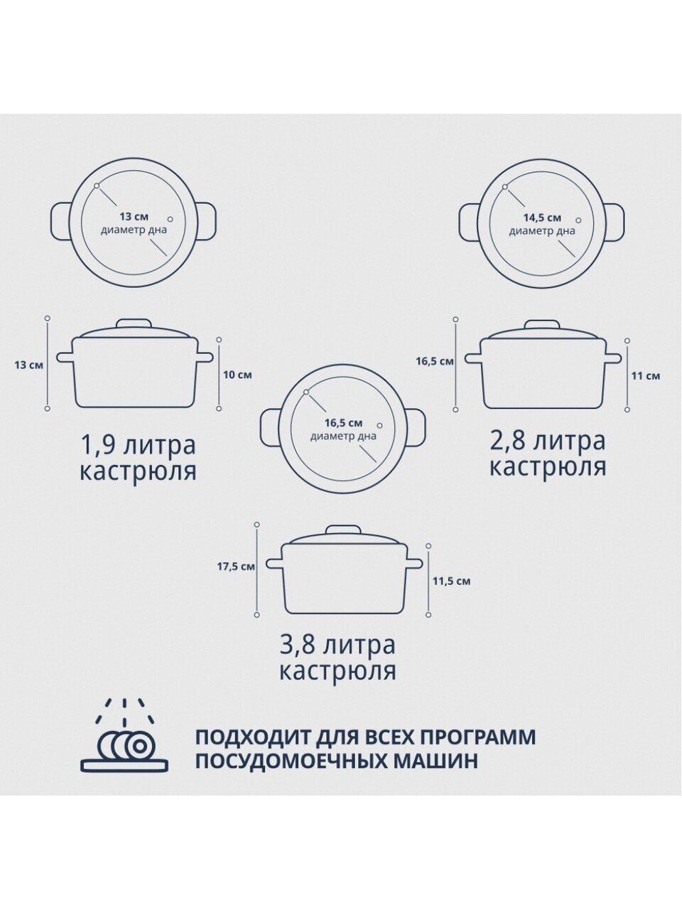 - Универсальный набор: три кастрюли разных объёмов для любых блюд и сценариев