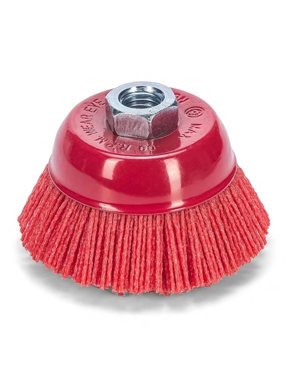 - Щётка для УШМ с нейлоновым ворсом обладает высоким качеством и долговечностью.