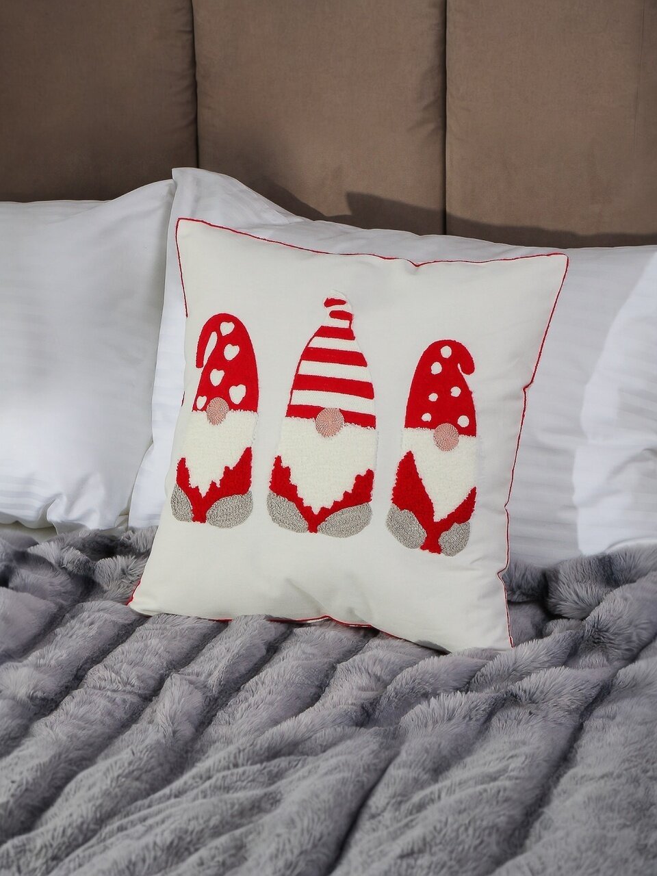 Декоративный чехол на подушку «Гномики», 45х45 см: стильный новогодний акцент для дома и дачи, долговечный 100% полиэстер, выгодная цена для подарка.