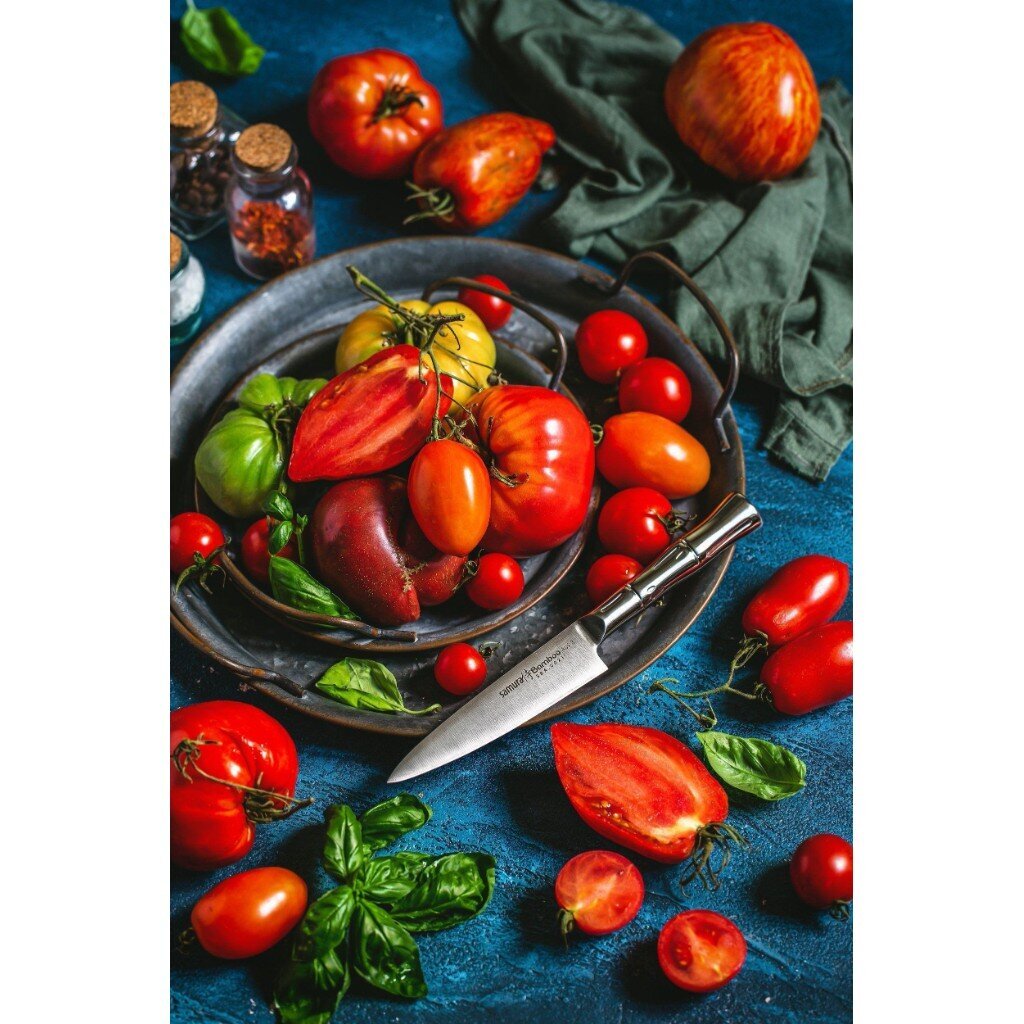 Вы можете приобрести «Нож кухонный Samura, Bamboo, универсальный, нержавеющая сталь, 12.5 см, рукоятка сталь, SBA-0021/К» и другие товары в нашем интернет-магазине в Орле по низким ценам и с бесплатным самовывозом.