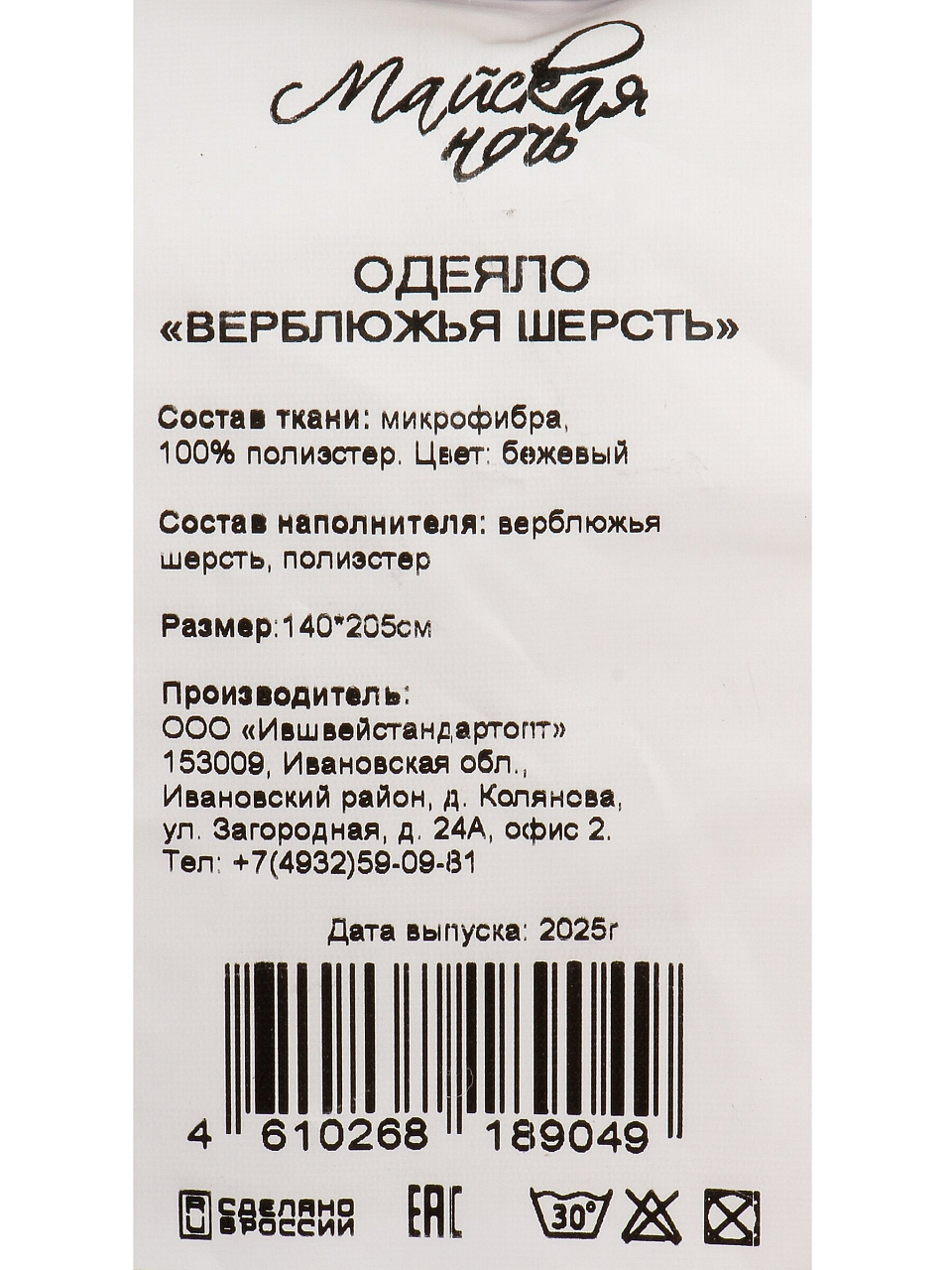 Одеяло 2-спальное 172х205 см «Майская ночь» из верблюжьей шерсти: тёплый комфорт зимой, гипоаллергенный чехол, оптимальная плотность 400 г/м2 — уют по доступной цене.