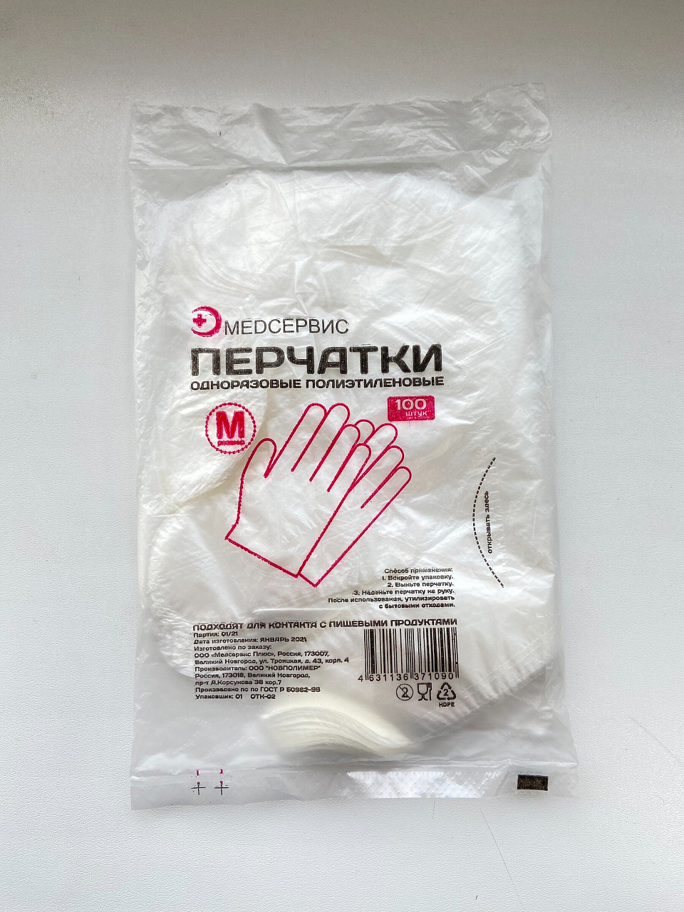 Перчатки полиэтилен, одноразовые, 100 шт, комплект 50 пар, размер L, большой, 12 микрон