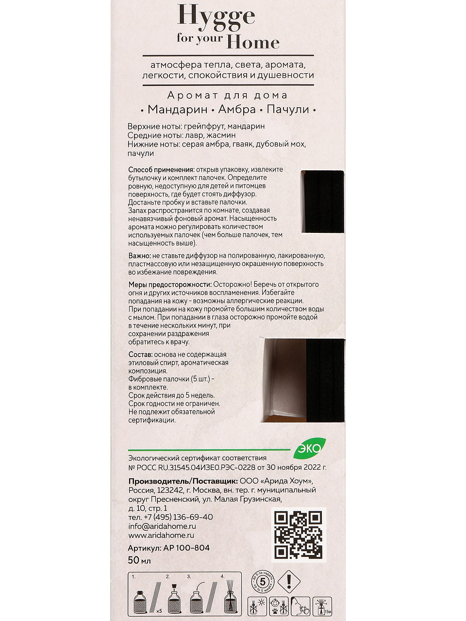 Вы можете приобрести «Аромадиффузор Arida Home, 50 мл, Мандарин/Амбра/Пачули, АР 100-804» и другие товары в нашем интернет-магазине в Шахтах по низким ценам и с бесплатным самовывозом.
