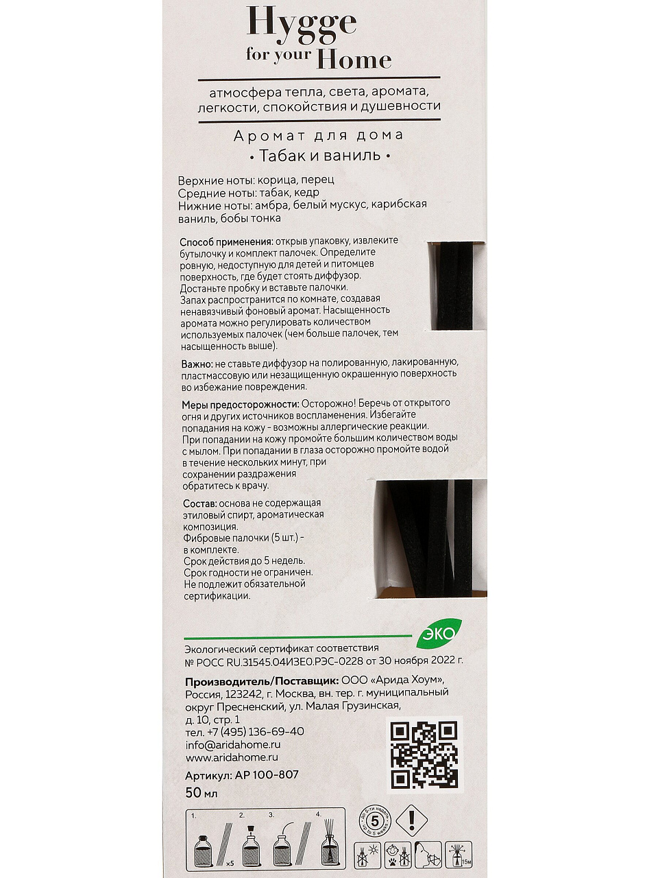 Аромадиффузор Arida Home «Табак и ваниль», 50 мл — быстрое устранение неприятных запахов и уютная атмосфера для дома и офиса без лишних затрат.