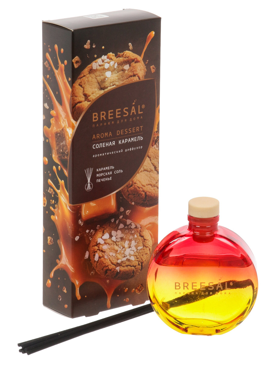 Аромадиффузор Breesal 70 мл «Десерт Соленая карамель» — уютный аромат для дома и подарка: до 30 дней свежести, премиум-дизайн, универсальное применение.