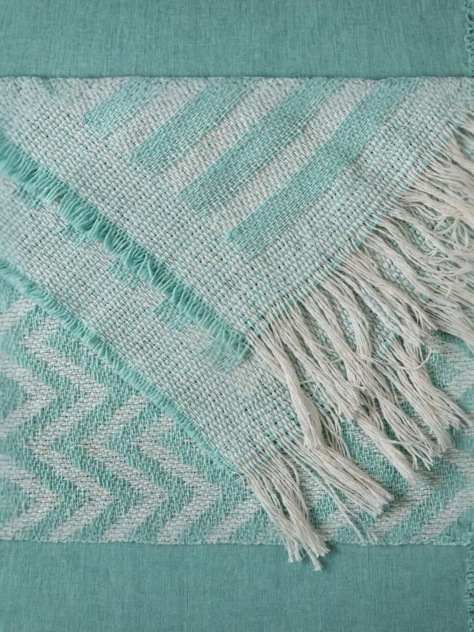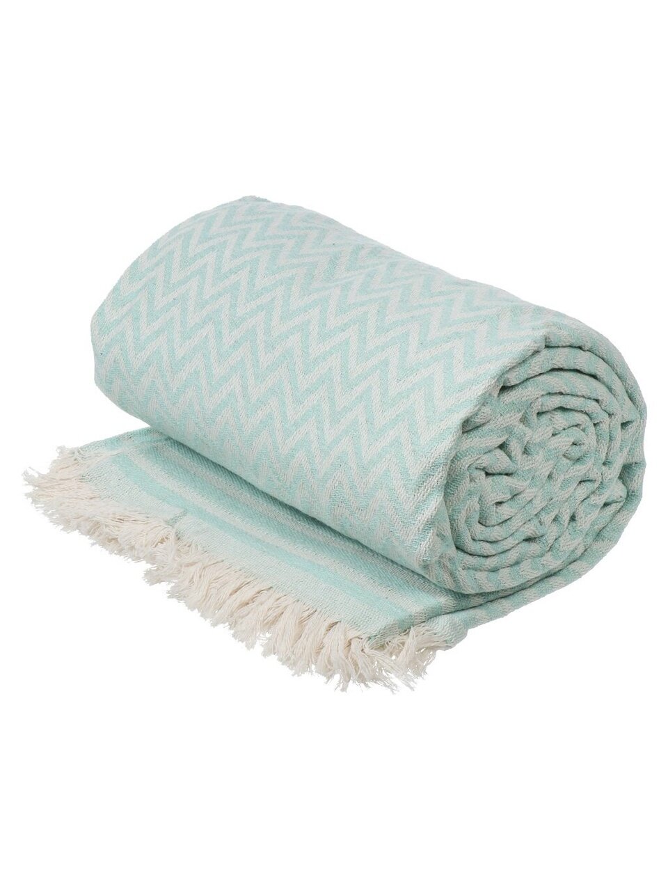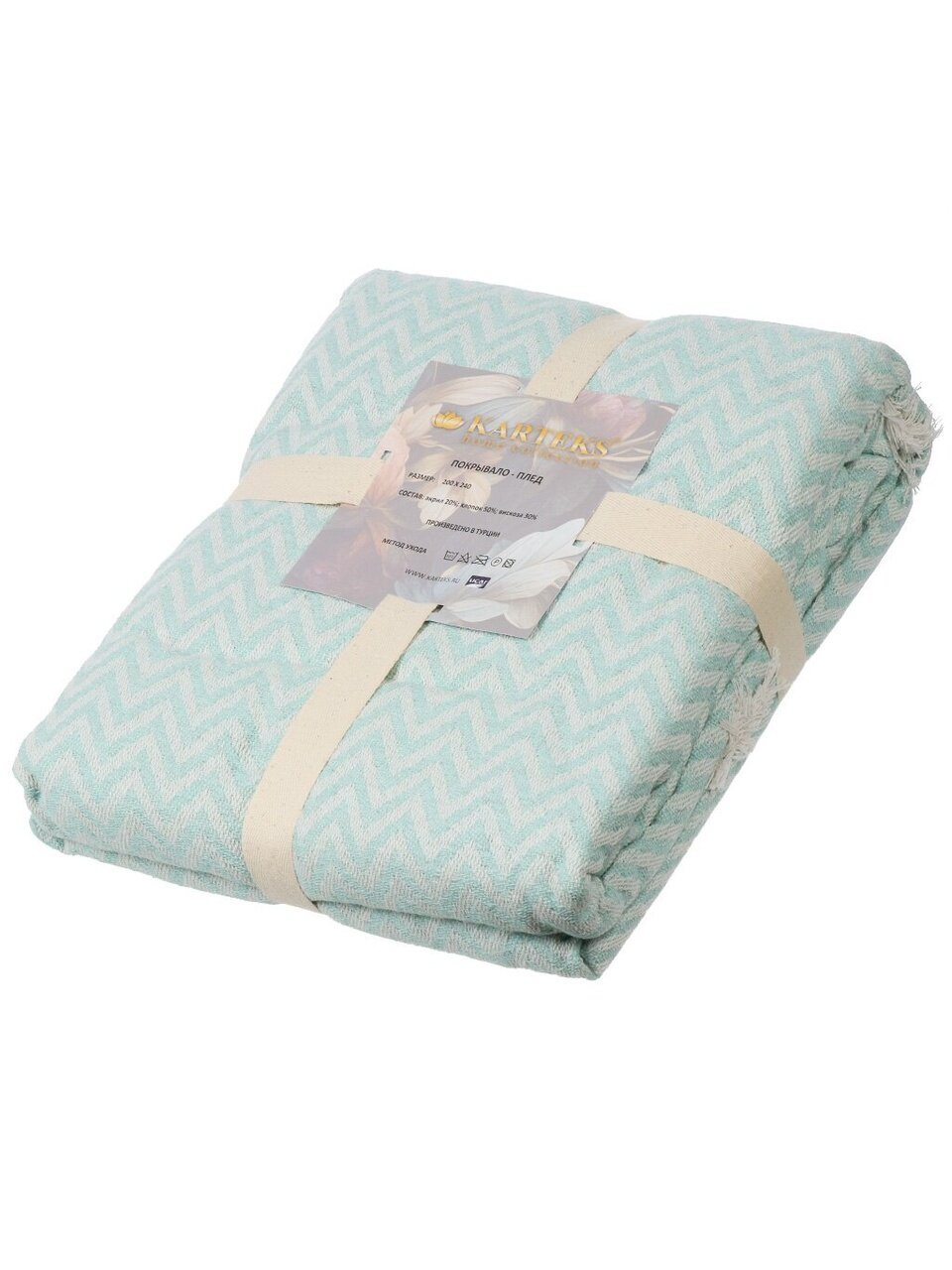 Плед евро Karteks EVIUM-002 Yesil 200х240 см: премиальный комфорт, натуральный хлопок и стильный зеленый зигзаг для вашего дома и подарка.