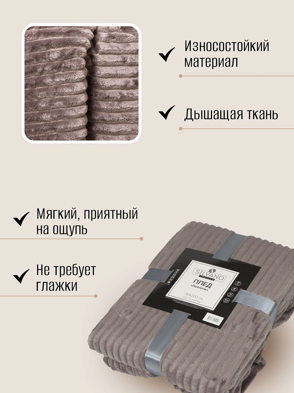 Как использовать плед Silvano? Его удобно брать на природу, использовать как покрывало на кровать или диван, а также дарить на новоселье или семейный праздник. Плед не стеганый, без отделки, с коротким ворсом — идеален для аллергиков и семей с детьми.