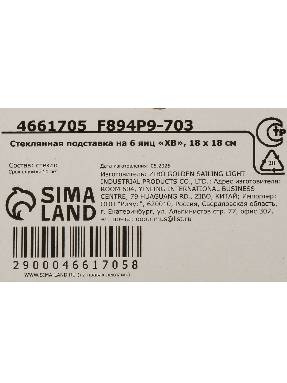 Вы можете приобрести «Подставка для яиц, стекло, 18х18х1.7 см, 6 ячеек, ХВ, 4661705» и другие товары в нашем интернет-магазине в Краснодаре по низким ценам и с бесплатным самовывозом.