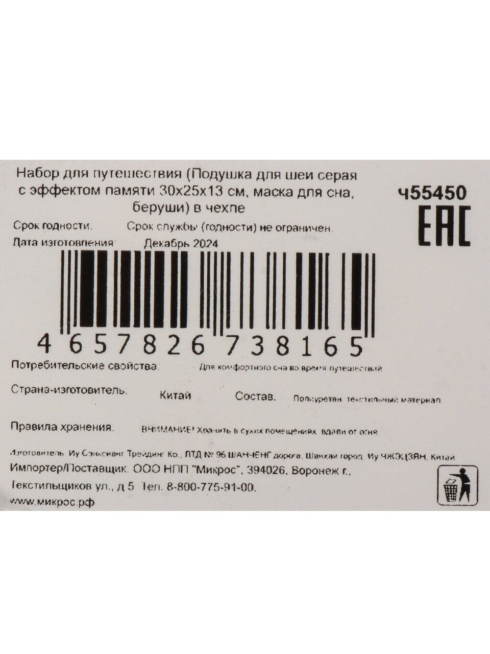 Часто спрашивают, как выбрать подушку для путешествий и чем отличается этот набор от других. Здесь нет ортопедического эффекта, но мягкий наполнитель с эффектом памяти поддерживает голову, а размер 30х25х13 см подходит большинству взрослых. Чехол из текстиля легко чистится, а компактный формат удобно брать с собой в ручную кладь. Набор универсален: его выбирают для самолёта, поезда, дома, офиса или в подарок — решение для сна и релакса без лишних трат.