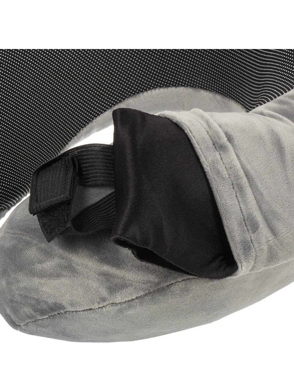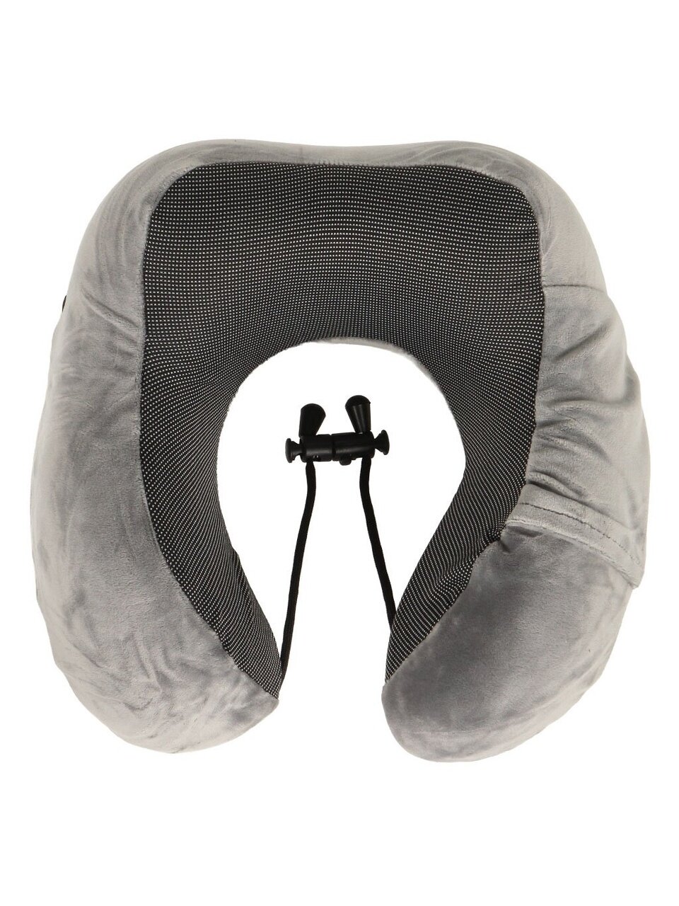 В этом наборе подушка не ортопедическая, но наполнитель с эффектом памяти повторяет форму головы и шеи, снижая усталость во время поездок. Материал — полиуретан, чехол — текстиль, дизайн — однотонный, цвет серый.