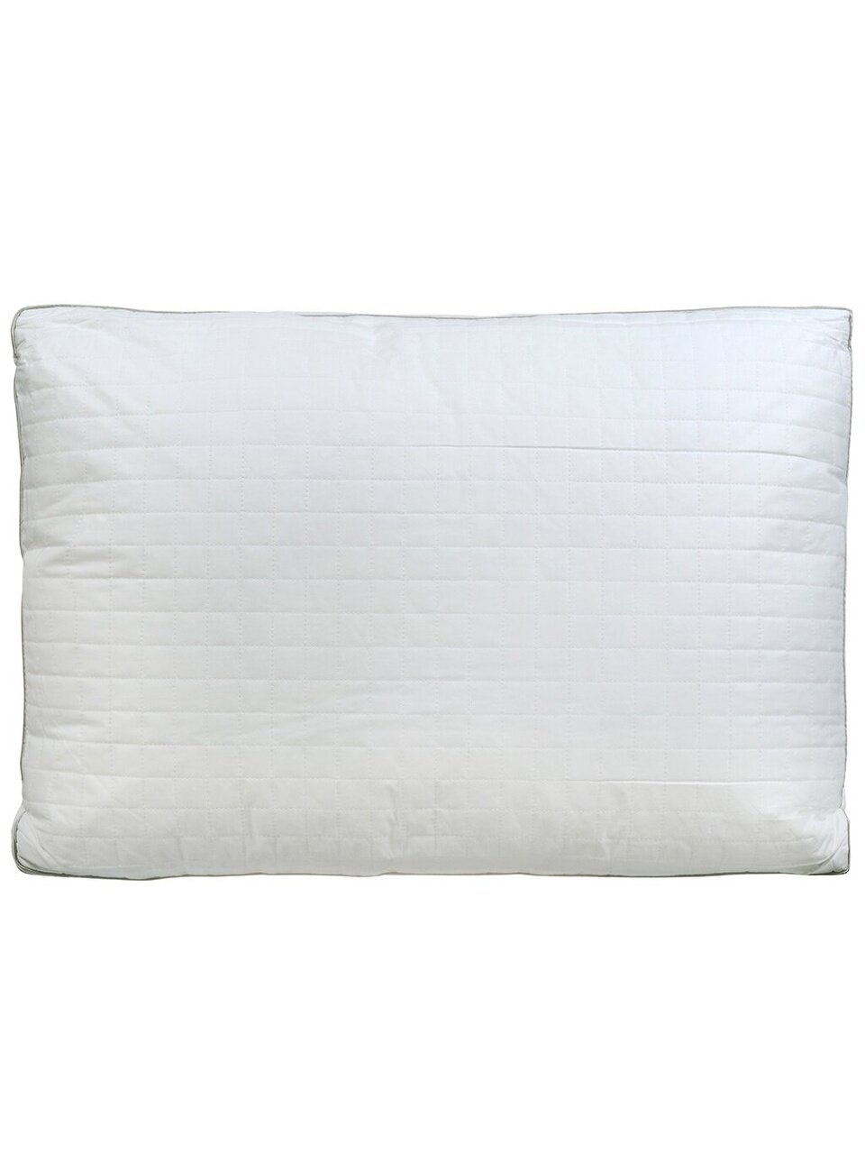 Размер: 50 х 70 см, высота — средняя, вес — 1,4 кг, чехол — хлопок, наполнитель — холлофайбер с эффектом лебяжьего пуха, цвет — белый, с окантовкой, дизайн однотонный, современный стиль.