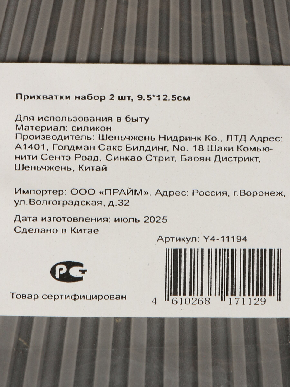 Прихватки силикон, 2 шт, усиленная, 11х1.4 см, навеска, сер, Y4-11194