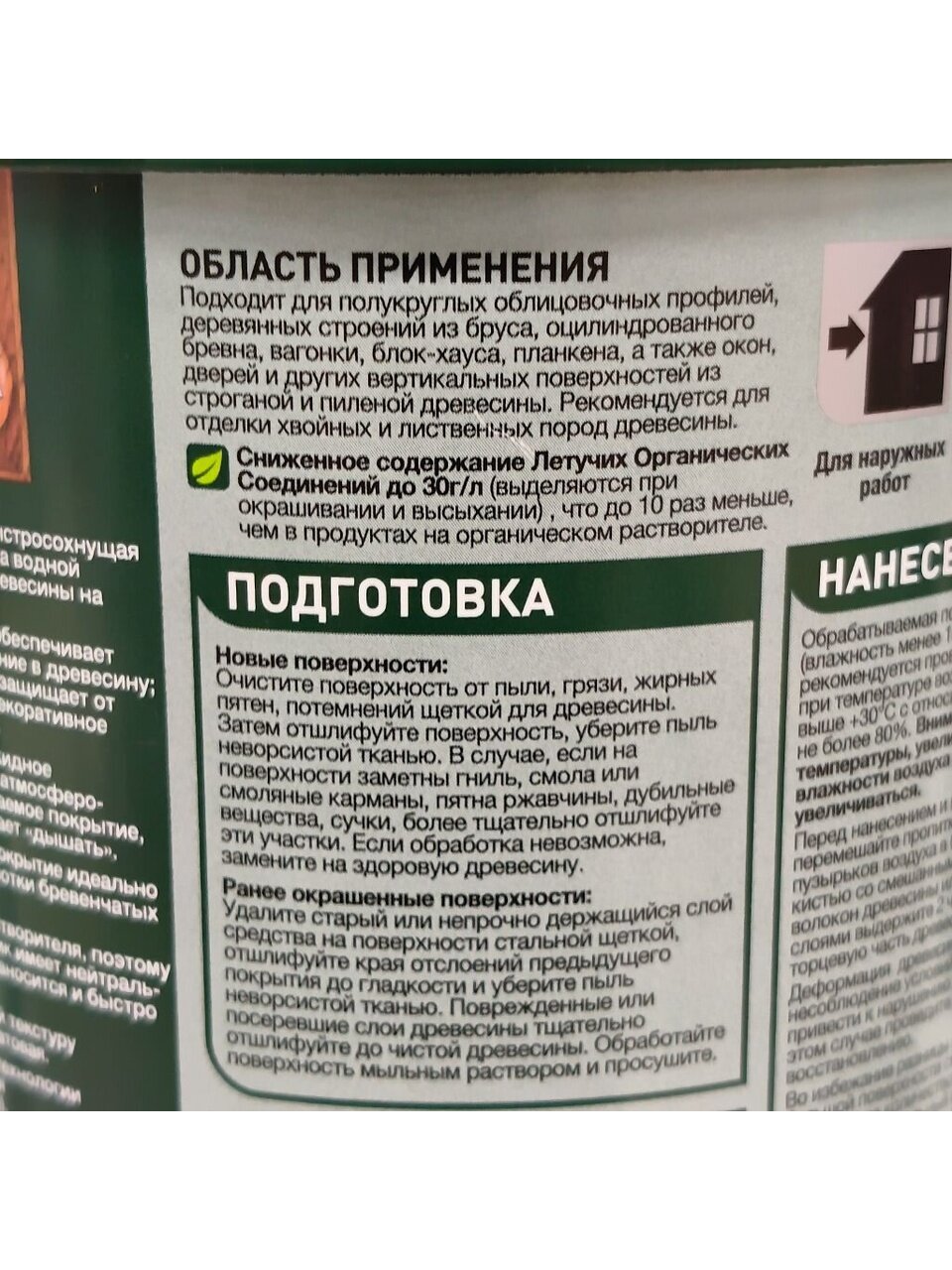 Быстросохнущая пропитка-антисептик на гибридной основе для защиты древесины. Эластичное тонкое покрытие идеально подходит для обработки бревенчатых фасадов и бань.