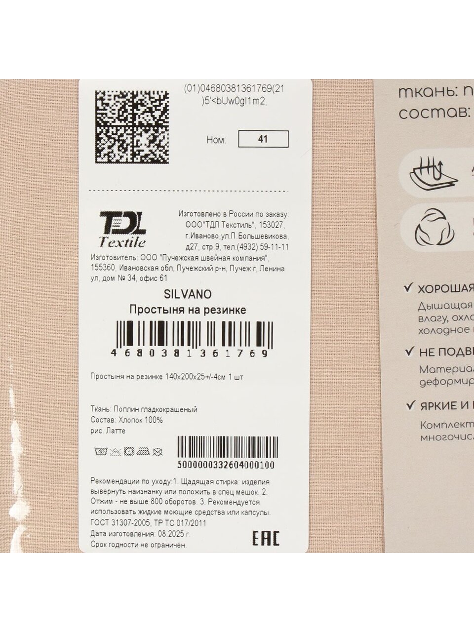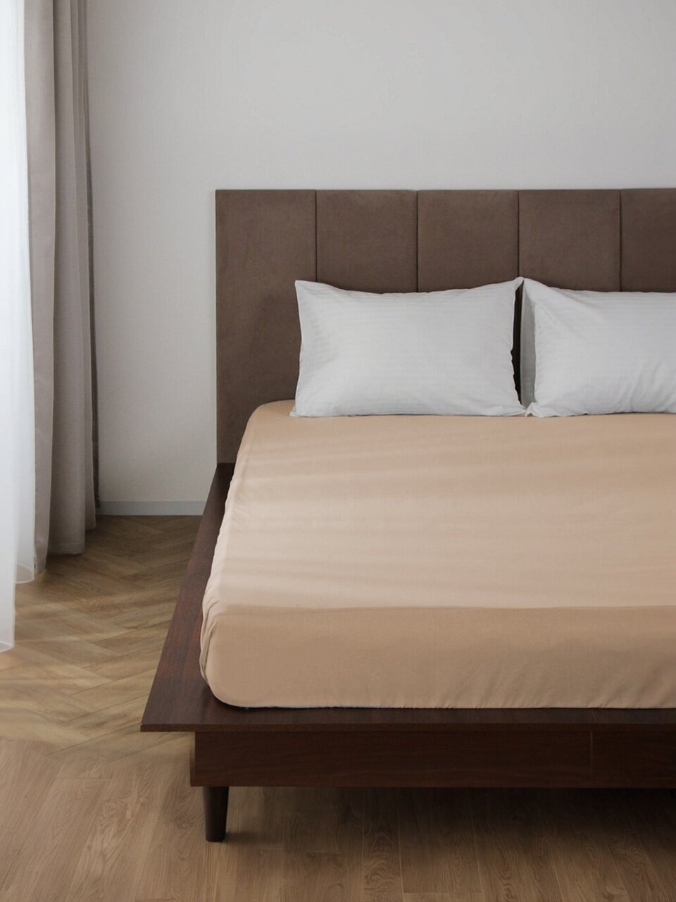 Простыня 1,5-спальная на резинке Silvano «Латте», 140×200×25 см, 100% хлопок поплин — комфорт и идеальная посадка для вашего сна по доступной цене.