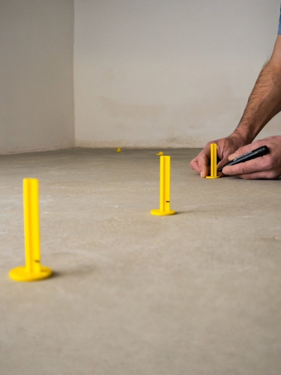 Для создания ровной поверхности во время заливки строительных смесей необходимо применять реперные маяки наливного пола. Они служат ориентиром нужной высоты стяжки и равномерного распределения строительного раствора на всей площади.