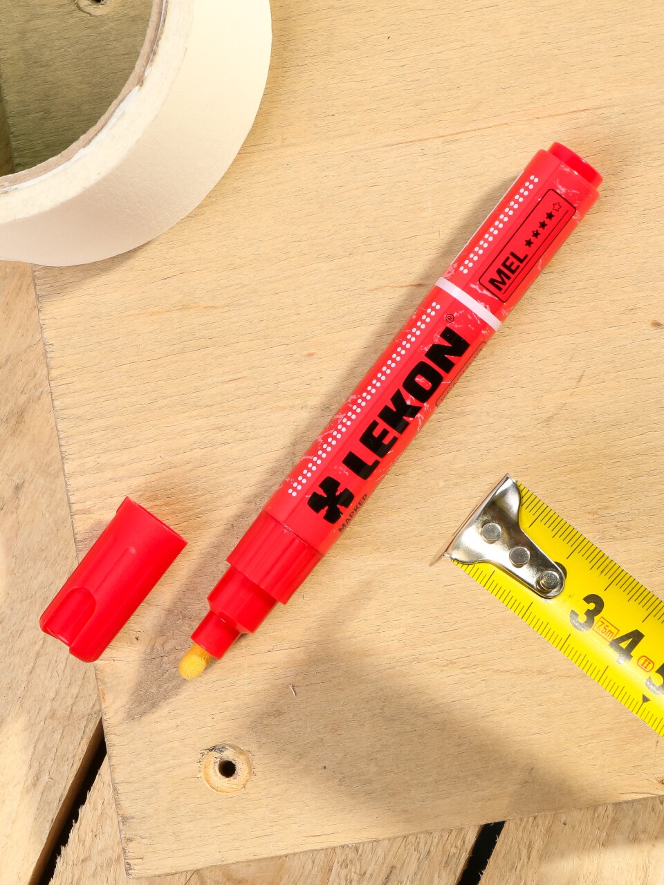 Маркер выполнен в красном цвете, подходит для яркой и заметной разметки на светлых и темных поверхностях. Артикул производителя — 14514.